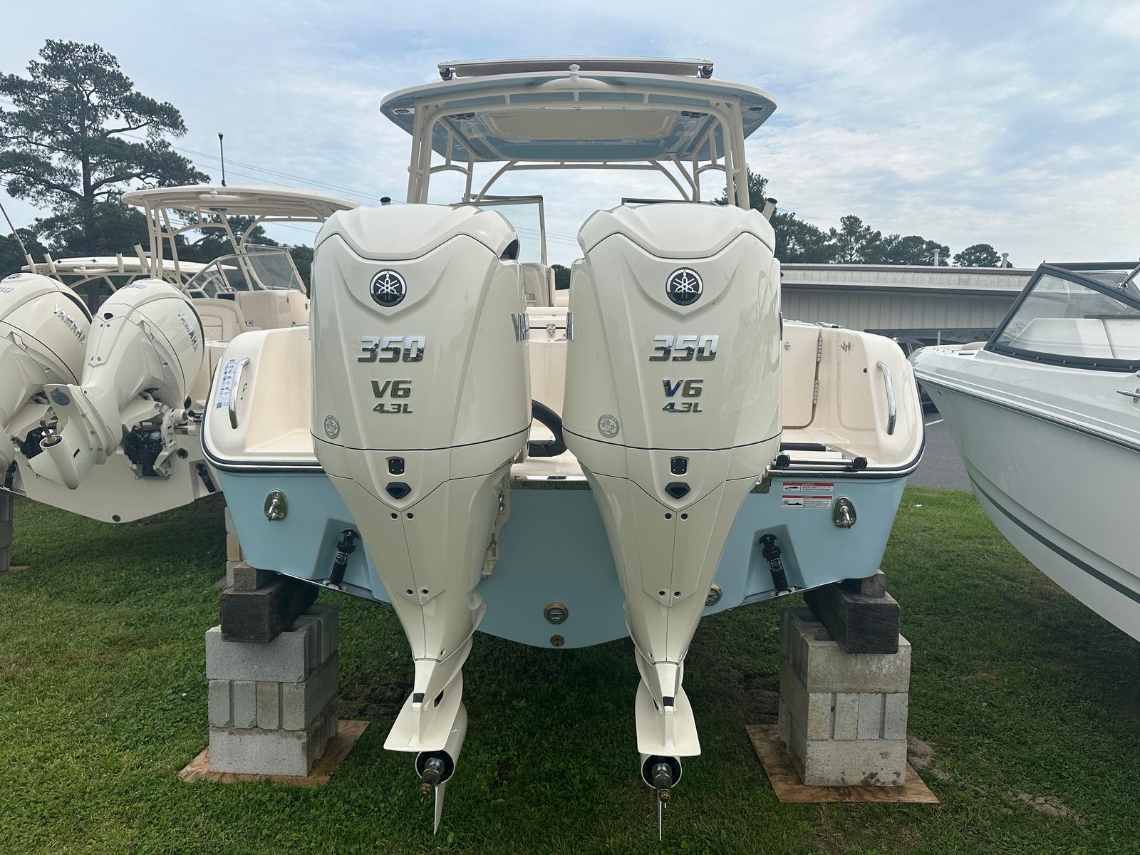 Powering the Freedom 285 are two robust engines, delivering a combined 700 horsepower. This impressive setup ensures exhilarating acceleration, smooth cruising, and reliable handling in a variety of conditions. Whether you’re navigating coastal waters, exploring inland lakes, or heading offshore for a day of fishing, the twin engines provide the confidence and control you need for a safe and enjoyable ride. The advanced hull design further enhances stability and efficiency, making this Dual Console boat for sale a top performer in its class.