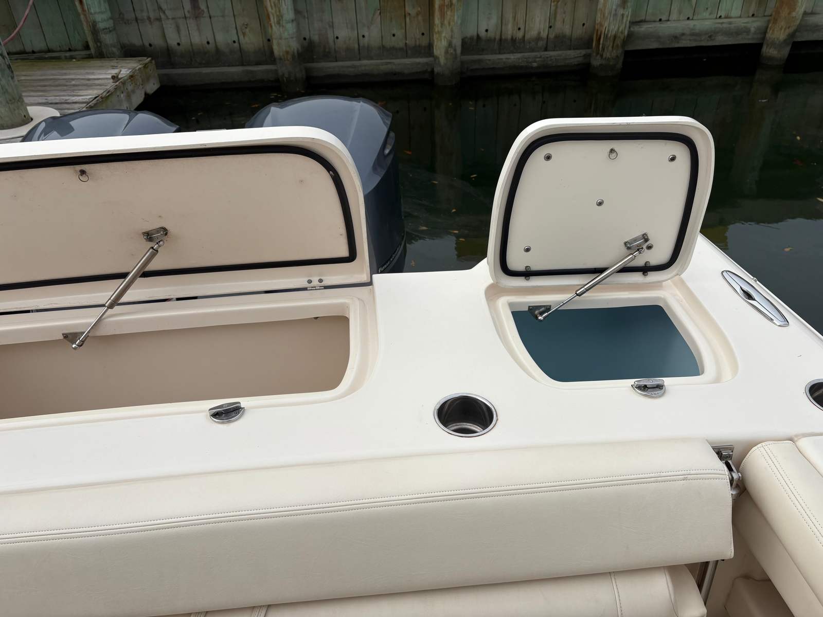 Powered by twin engines delivering a combined 600 horsepower, the Grady-White Freedom 307 offers exhilarating performance and smooth handling. The dual engines provide impressive acceleration, responsive maneuverability, and the confidence to tackle a variety of water conditions. Whether you are cruising along the coastline, heading offshore for a day of fishing, or enjoying water sports with family and friends, this Dual Console boat for sale delivers the power and reliability you need. The robust engine setup ensures that you can reach your favorite destinations quickly and efficiently, making every outing more enjoyable.