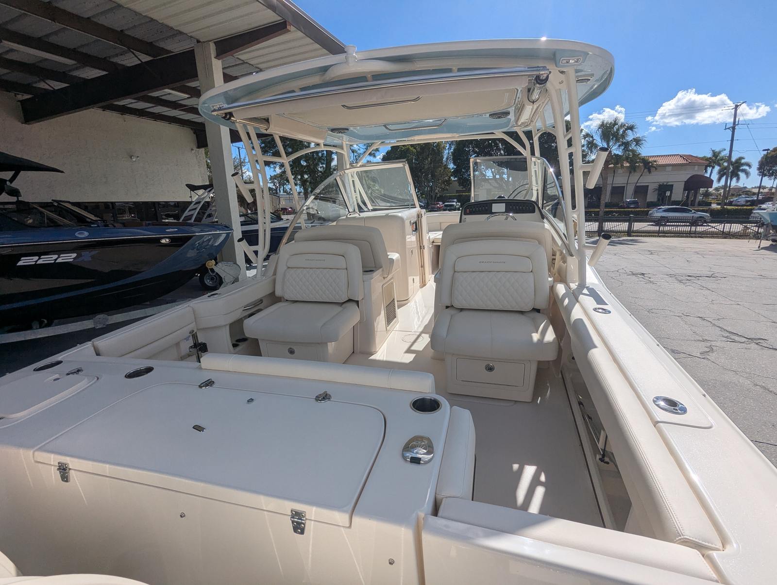 The Grady-White Freedom 307 shines in a variety of scenarios, making it an incredibly versatile choice for boaters of all interests. For families, the spacious seating and sun platform create the perfect environment for fun-filled days on the water, from swimming and tubing to picnicking and sightseeing. Anglers will appreciate the boat’s stability and ample space for casting lines, while the comfortable lounge areas provide a welcome retreat after a day of fishing.If you love entertaining, the Freedom 307’s open layout and luxurious features make it easy to host gatherings, whether you are anchored in a quiet cove or cruising along the coastline. The underwater lights set the mood for evening events, while the electric Sure Shade top ensures everyone stays comfortable as the sun sets. This boat is also ideal for couples or groups seeking a luxury getaway, offering the perfect blend of adventure and relaxation.