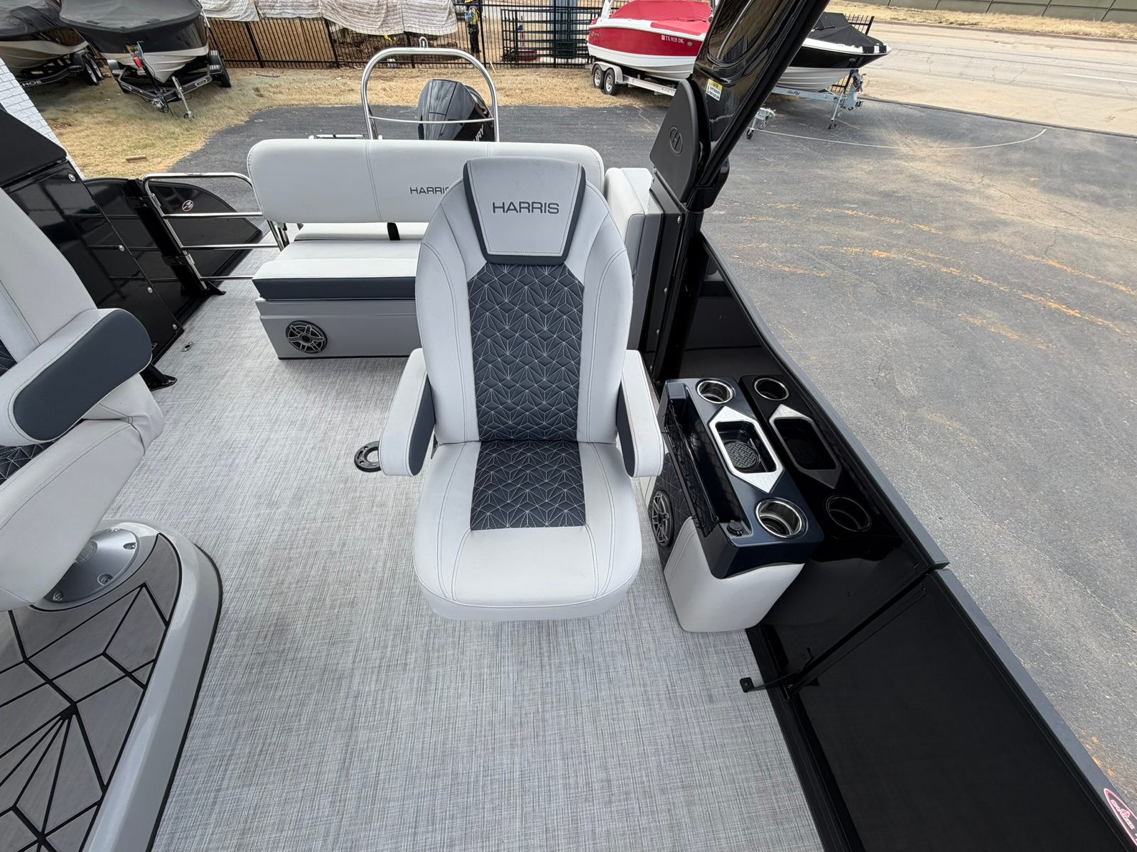 Now available for sale at our Used Boat Super Center in Lewisville, this exceptionally clean 2023 Harris Grand Mariner 230 features a sleek black and grey exterior paired with a light gray and dark graphite accent interior. Powered by a Mercury fuel-injected V8 300 HP engine, this boat has just 96 freshwater hours and delivers impressive performance, smooth handling, and premium comfort throughout.