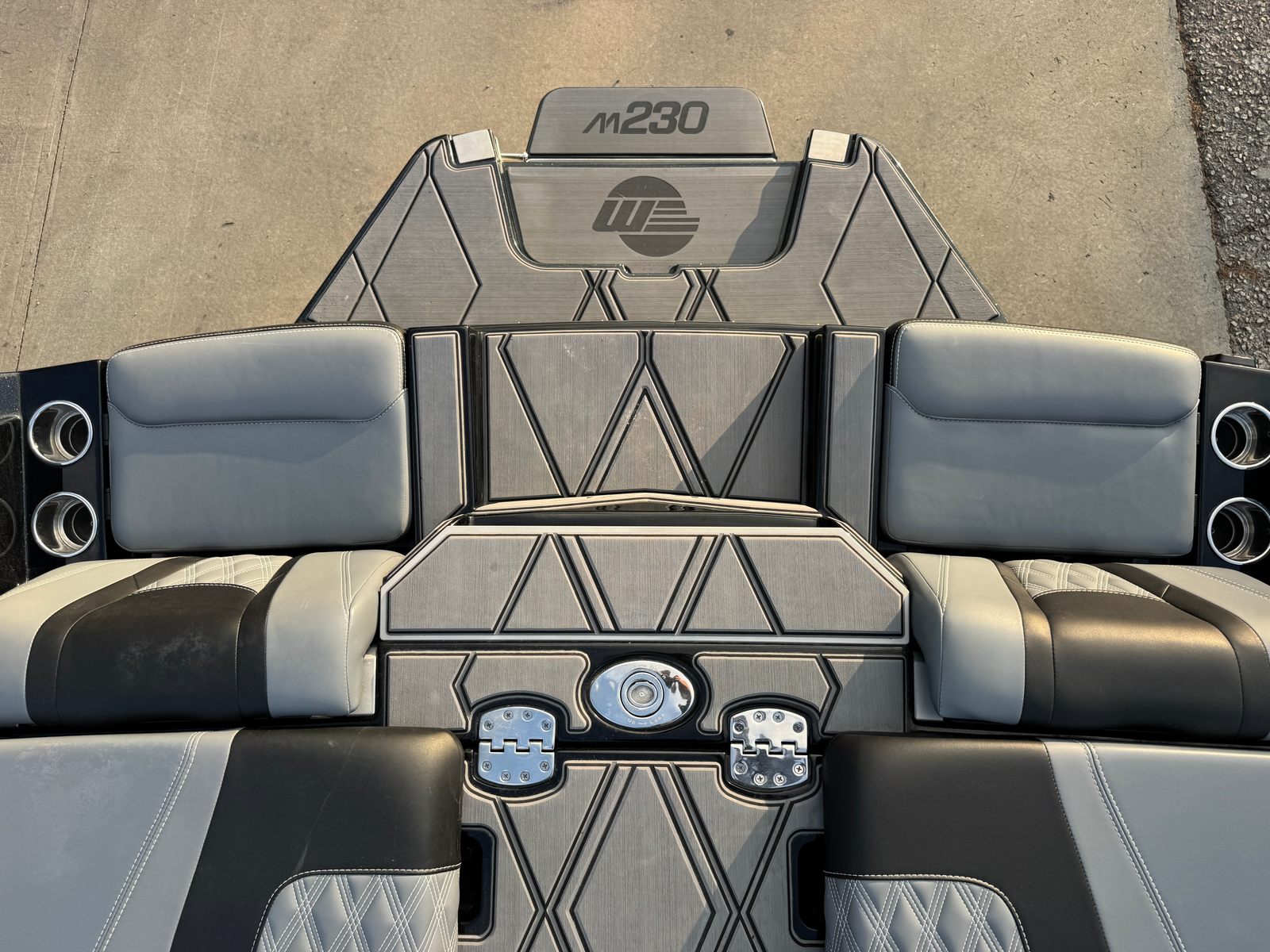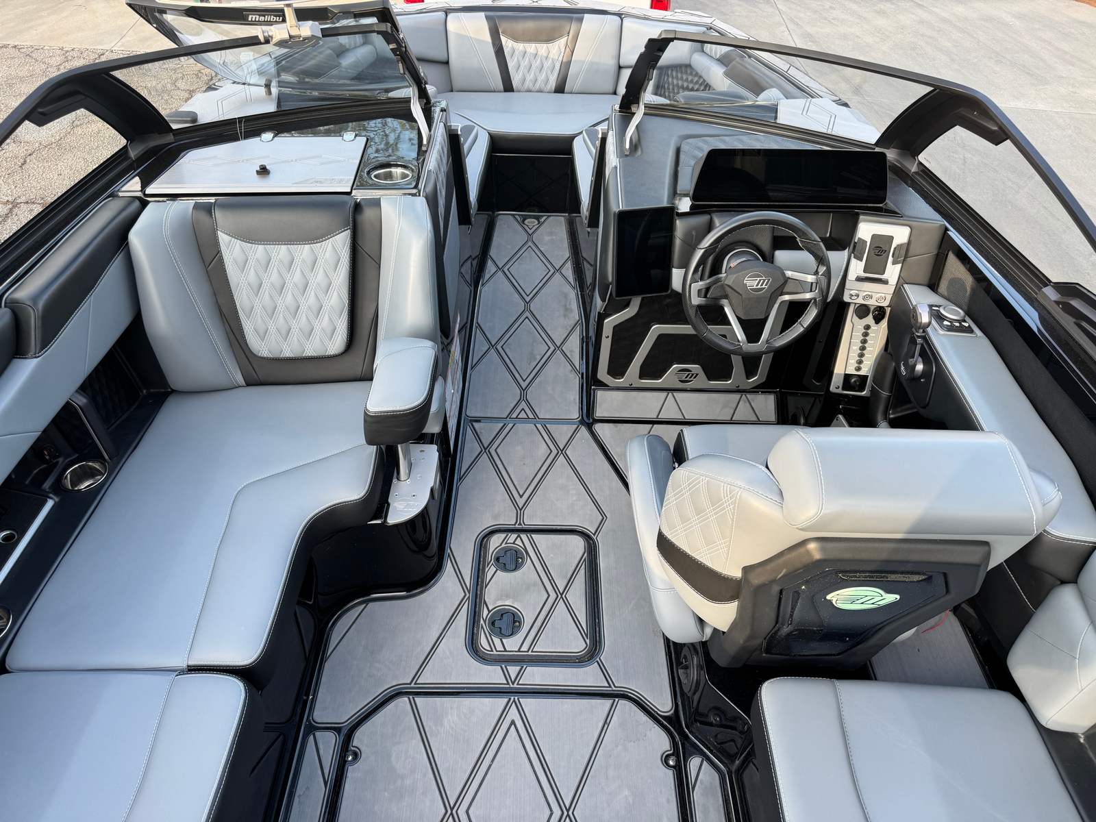 The Malibu M230 is packed with features designed to enhance your time on the water. Its spacious 23-foot layout provides plenty of room for friends, family, and all your gear, ensuring everyone can relax and enjoy the ride. The boat’s advanced hull design creates the perfect wake for skiing, wakeboarding, or wakesurfing, making it a favorite among water sports enthusiasts. The intuitive helm puts all controls at your fingertips, allowing for easy operation and precise adjustments to suit your activity and skill level. Every detail of the M230 is crafted to maximize comfort, convenience, and fun, from the plush seating to the ample storage options for boards, ropes, and life jackets.