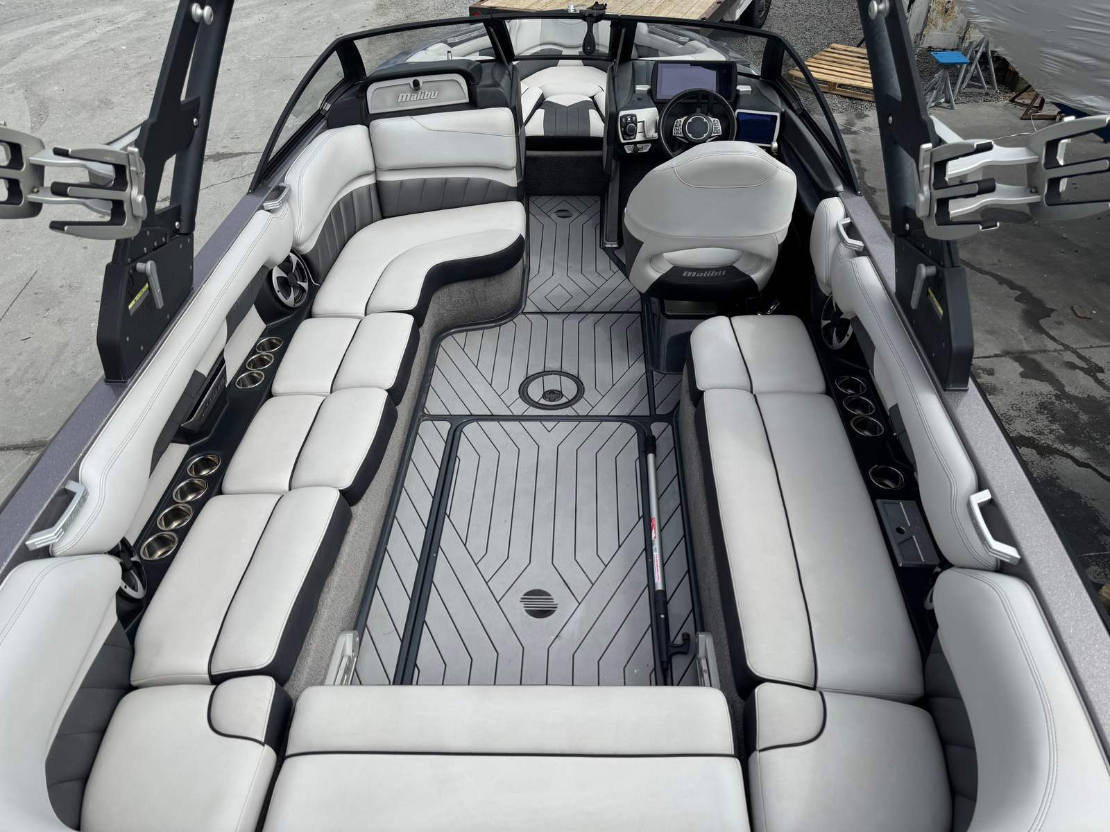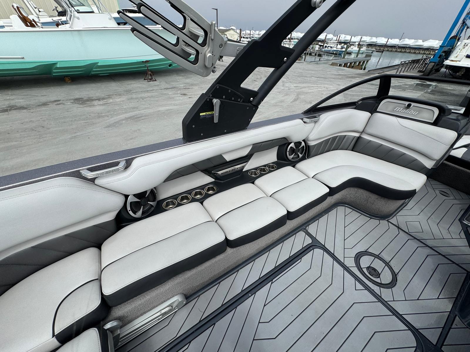 At the heart of the Wakesetter 25 LSV is a powerful single engine delivering an impressive 450 horsepower. This robust engine ensures exhilarating acceleration, smooth cruising, and the ability to create massive, customizable wakes for wakeboarding and surfing. The advanced hull design enhances stability and maneuverability, allowing you to carve through the water with precision and confidence. Whether you are towing skiers, wakeboarders, or simply enjoying a high-speed cruise, this Malibu boat for sale offers the performance you need to make every outing memorable.