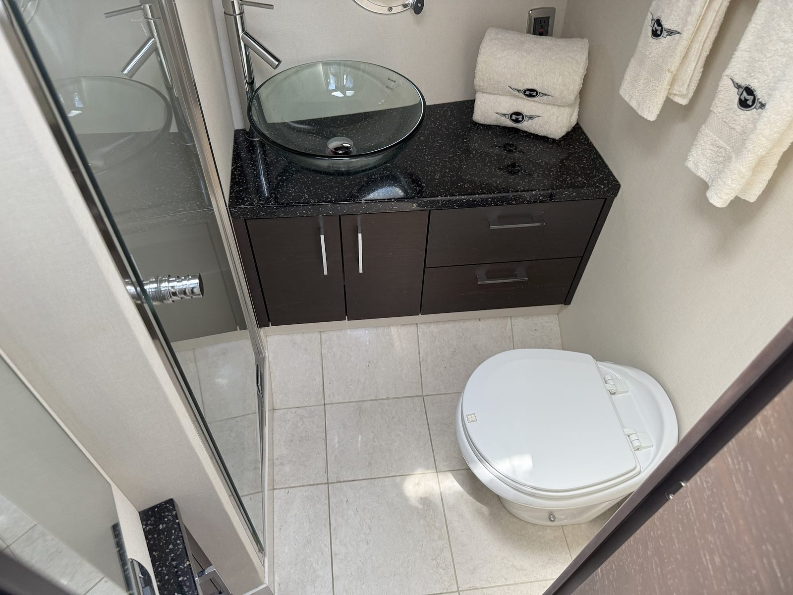 Powering this remarkable yacht are two robust engines, delivering a combined horsepower of 870. With only 420 engine hours, these engines offer plenty of life and reliability for future adventures. The Marquis 420 is engineered for smooth cruising and responsive handling, making every journey enjoyable whether you’re navigating open waters or cruising along the coast. The impressive horsepower ensures swift acceleration and steady performance, giving you the confidence to explore new destinations with ease.