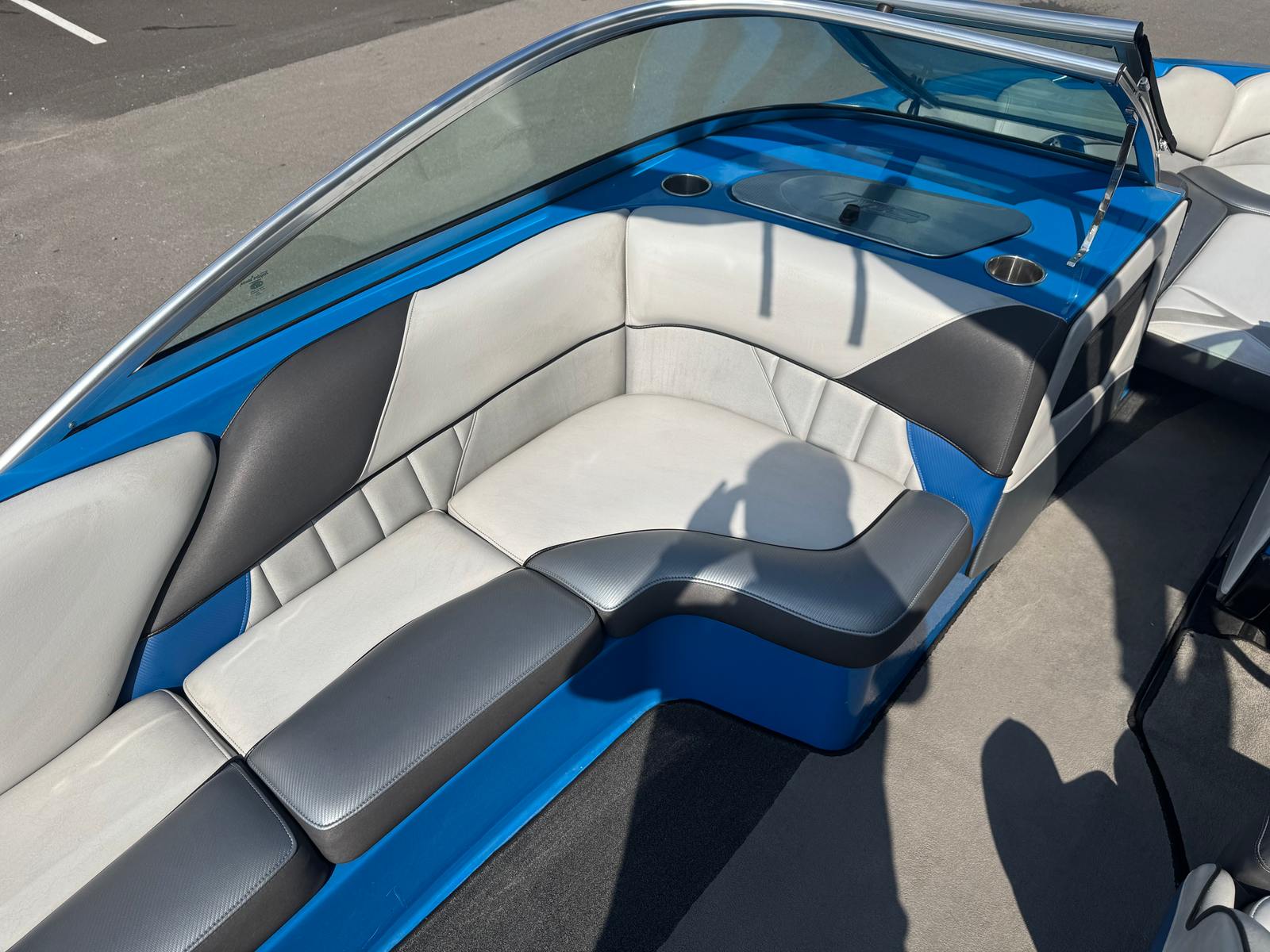 At the heart of the Mb Sports B-52 is a powerful single engine, delivering an impressive 350 horsepower. This robust engine ensures rapid acceleration, smooth cruising, and the torque needed to create perfect wakes for skiing and wakeboarding. With 235 engine hours, the motor has plenty of life left, offering dependable performance for seasons to come. The B-52’s hull design is optimized for wake creation, allowing riders to enjoy crisp, clean wakes and waves that cater to all skill levels. Whether you’re pulling a wakeboarder, skier, or tuber, the engine’s responsive power and efficiency make every ride exhilarating. The precision handling and agile maneuverability of this Ski & Wakeboard boat for sale mean you can navigate tight turns and open water with confidence, making it a favorite among water sports aficionados.