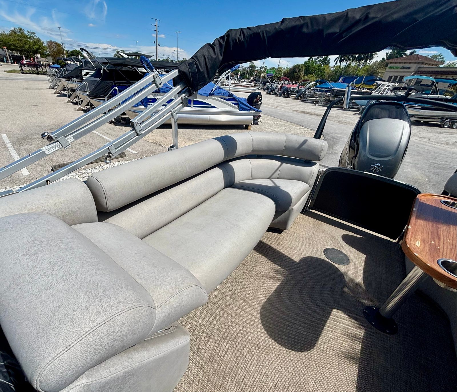 The Premier 270 Intrigue is as practical as it is enjoyable. The spacious deck provides plenty of storage for gear, water toys, and personal items, keeping the area organized and clutter-free. The single-engine design simplifies maintenance and operation, making it easy for both new and experienced boaters to enjoy. Docking and maneuvering are straightforward, thanks to the responsive handling and well-balanced layout. The efficient engine helps you make the most of your time on the water, whether you are planning short day trips or extended outings. This used pontoon boat for sale offers the perfect blend of convenience and performance for a wide range of activities.