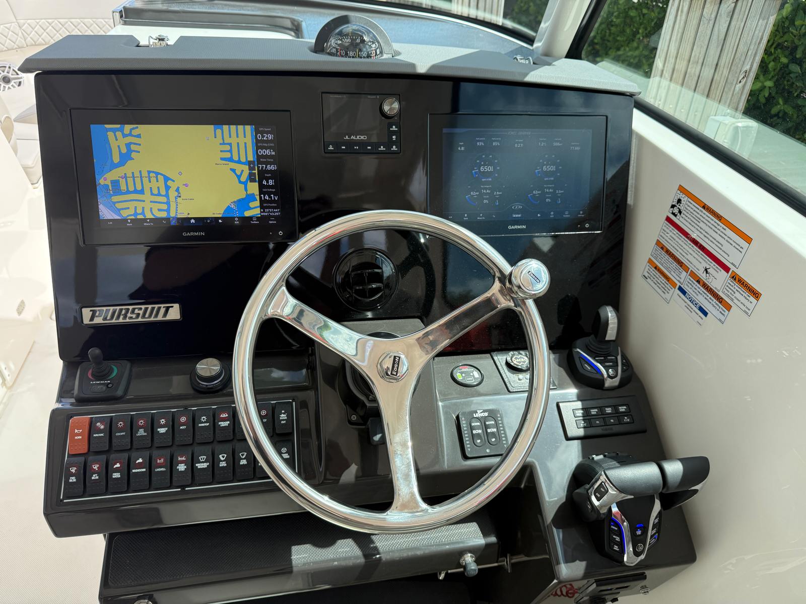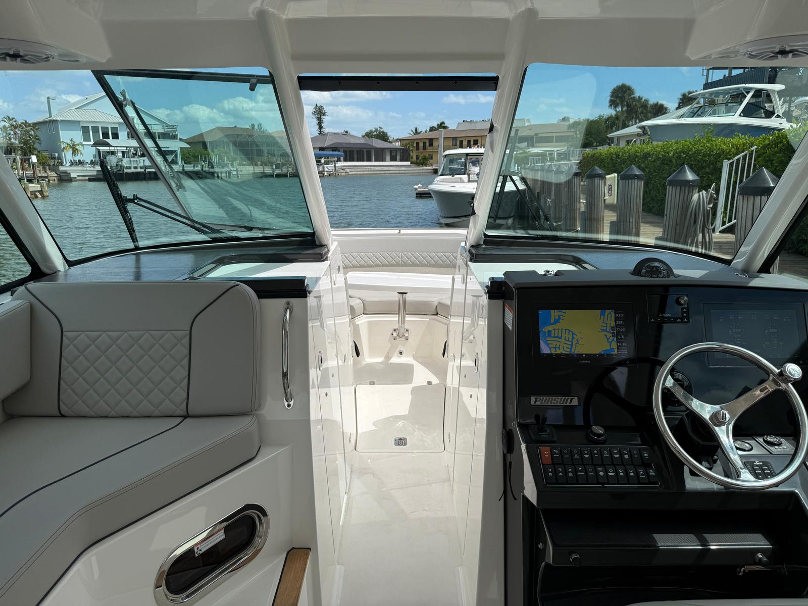 Power and precision are at the heart of the 2025 Pursuit DC 326. Equipped with twin engines delivering a combined 700 horsepower, this dual console boat is engineered for exhilarating performance and responsive handling. With only 105 engine hours, these motors offer plenty of life and reliability for years of boating adventures.The robust powertrain ensures smooth acceleration, impressive top speeds, and confident maneuverability, whether you’re navigating open waters or docking at your favorite waterfront restaurant. The Pursuit DC 326’s hull design enhances stability and ride comfort, allowing you to tackle a variety of conditions with ease. Whether you’re chasing the horizon or enjoying a leisurely cruise, this Pursuit boat for sale delivers a dynamic and enjoyable experience every time you hit the water.
