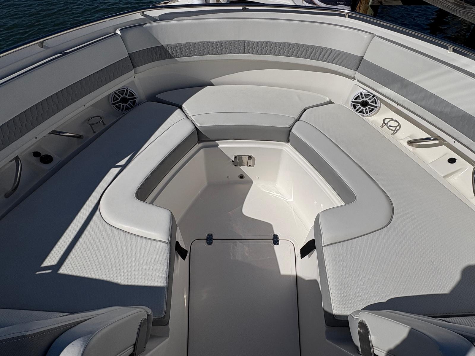Step aboard to find crisp white upholstery, a bridge deck table, and a custom retractable sunshade for flexible entertaining. Enjoy immersive sound with the Premium JL Audio Package, and protect your investment with an aft curtain, instrument cover, and bow tonneau cover. Equipped with Garmin GMR 24 xHD radar, this 326 DC is fully outfitted for cruising, fishing, or relaxing days on the water. Well-maintained, beautifully optioned, and turnkey ready. Note this boat is bottom painted.