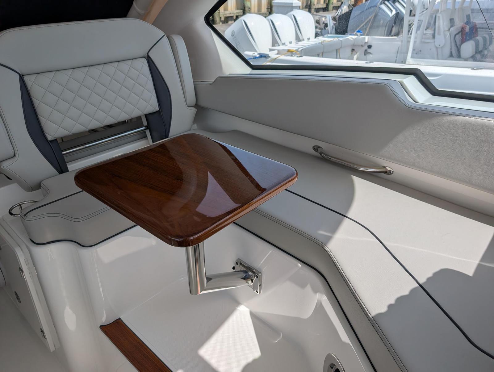The Pursuit DC 326 is loaded with features that enhance both functionality and enjoyment on the water. As a dual console boat, it provides ample seating and a flexible layout, making it easy to transition from fishing to entertaining. The spacious cockpit and bow areas are designed for comfort, allowing guests to relax and socialize in style. The high-quality construction and attention to detail are evident throughout, from the premium upholstery to the thoughtfully arranged storage compartments. This Pursuit boat for sale is equipped with advanced navigation and control systems, ensuring a safe and enjoyable boating experience. The dual console design offers protection from the elements, while the generous beam provides stability and plenty of room for passengers to move about freely. With its impressive length of 34.5 feet, the DC 326 offers a perfect balance of space and maneuverability, making it suitable for both novice and experienced boaters. She is fully equipped with Power Sun Shade, Bow Thruster and Helm Master Joystick,