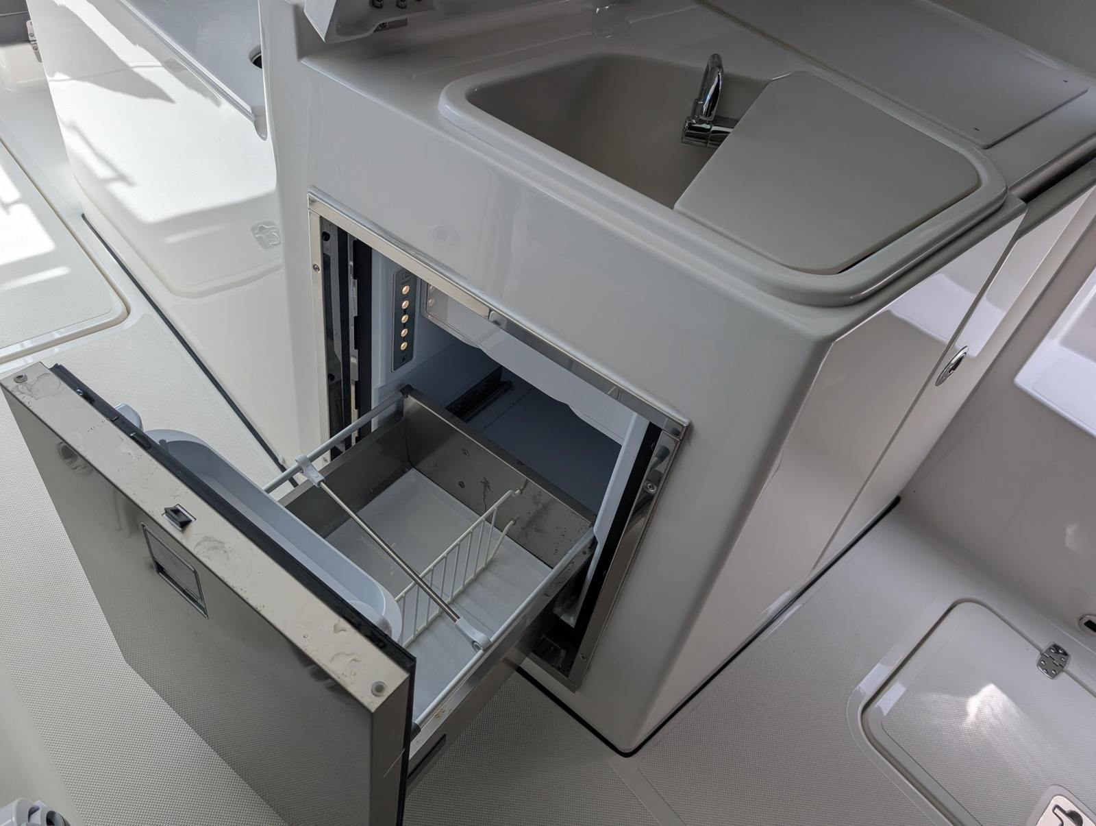 The Pursuit DC 326 is designed with practicality in mind, making ownership both enjoyable and convenient. The dual console configuration allows for easy access to both the bow and stern, simplifying docking and maneuvering in tight spaces. Ample storage compartments throughout the boat provide plenty of room for life jackets, fishing equipment, water toys, and other essentials, keeping the deck clutter-free and organized. Fuel efficiency is another key advantage of this Pursuit boat for sale, thanks to its modern engine technology and streamlined hull design. You’ll spend more time enjoying the water and less time at the fuel dock, making every outing more cost-effective. The Pursuit DC 326 is also easy to maintain, with high-quality materials and finishes that are built to withstand the rigors of marine environments.