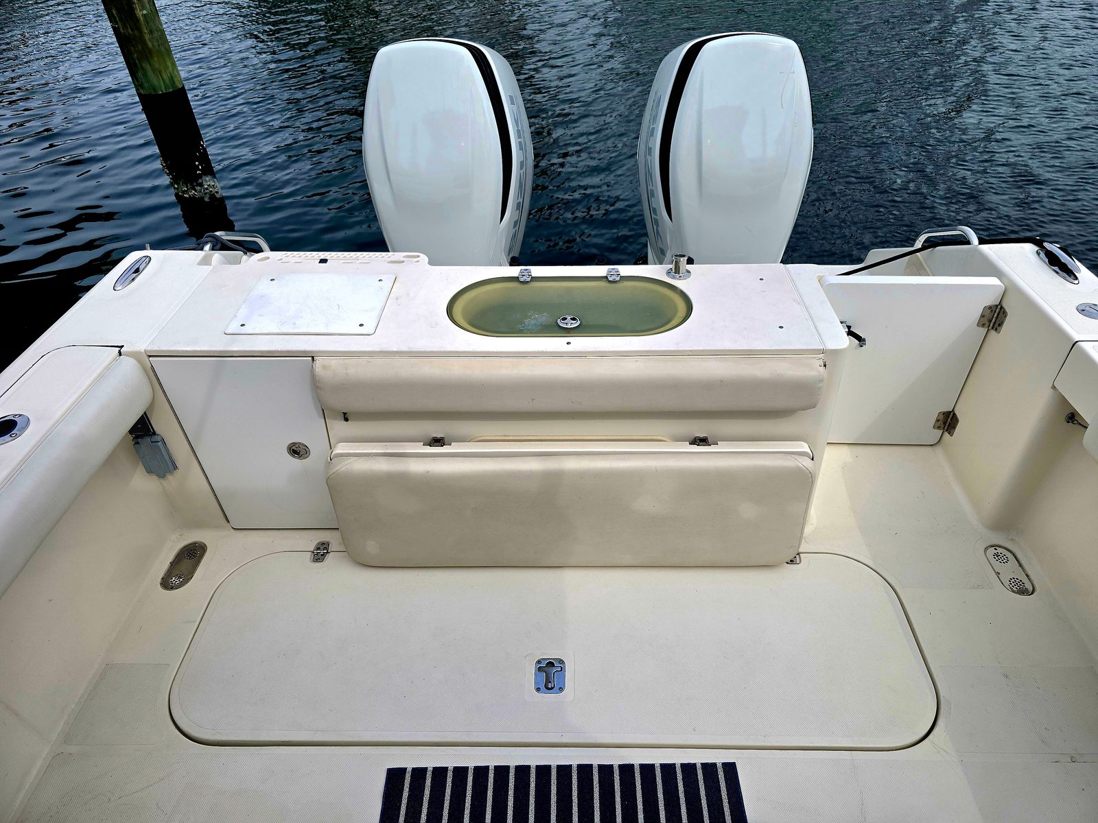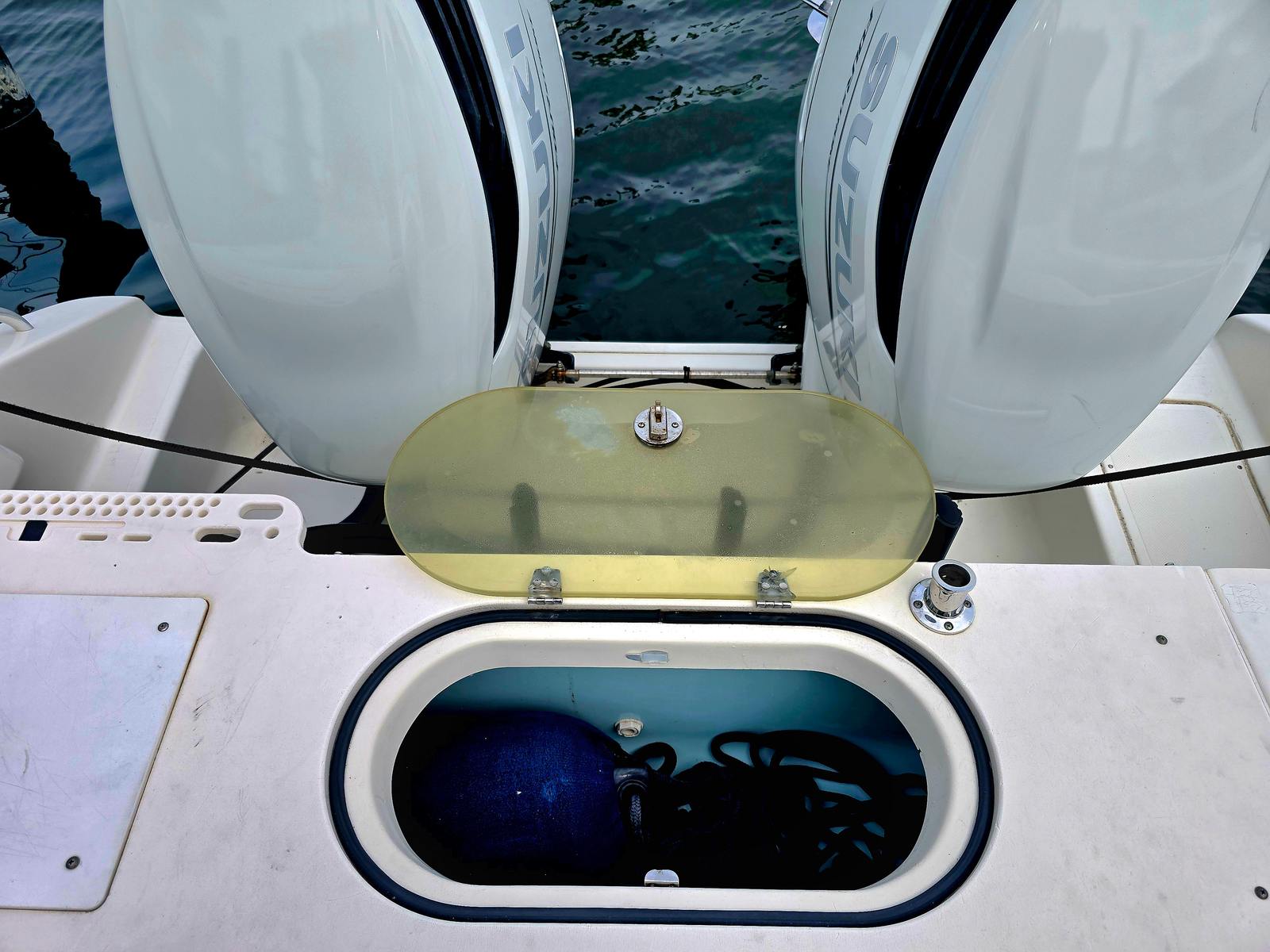 The boat was repowered in the fall of 2023 with Suzuki 250’s with digital controls.