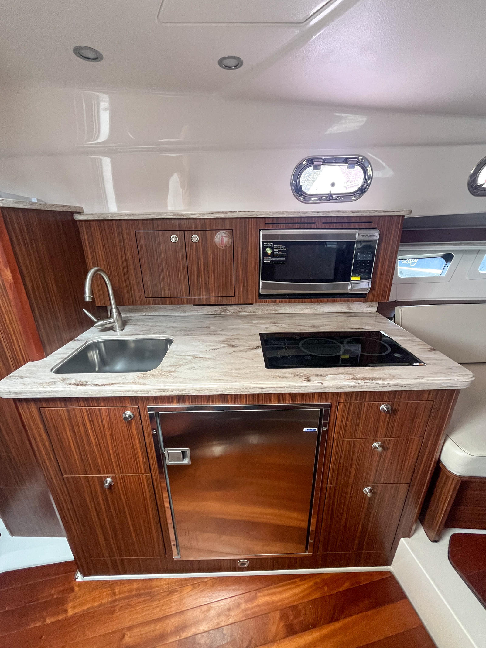 Beyond its recreational appeal, the Pursuit OS 355 excels in practical aspects that make ownership a breeze. The ample storage space allows you to stow away gear, supplies, and personal items with ease, keeping the deck and cabin clutter-free. Its thoughtful design ensures that docking and maneuvering are straightforward, even for those new to boating. Fuel efficiency is another highlight, thanks to the advanced engineering of its twin engines, allowing you to enjoy longer trips without frequent refueling stops. Maintenance is simplified by Pursuit’s reputation for durability and reliability, ensuring that your investment remains in excellent condition for years to come.