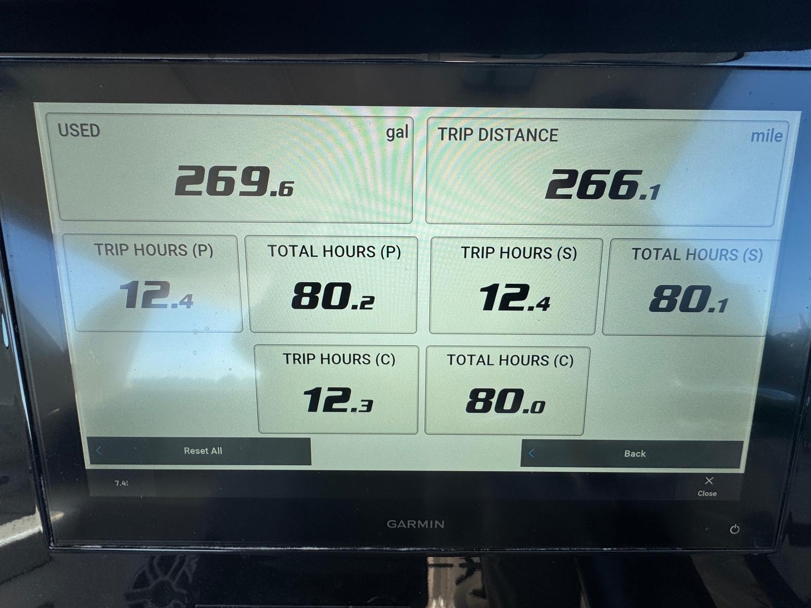 Powering the Pursuit OS 355 are three high-performance engines, delivering a combined 900 horsepower. With only 80 engine hours, these engines are barely broken in, ensuring years of reliable service and thrilling performance. The triple-engine setup provides exceptional speed, agility, and control, making this cruiser ideal for a variety of water conditions. Whether you are cruising along the coastline, exploring hidden coves, or embarking on longer journeys, the Pursuit OS 355 offers the power and responsiveness you need for a memorable boating experience.