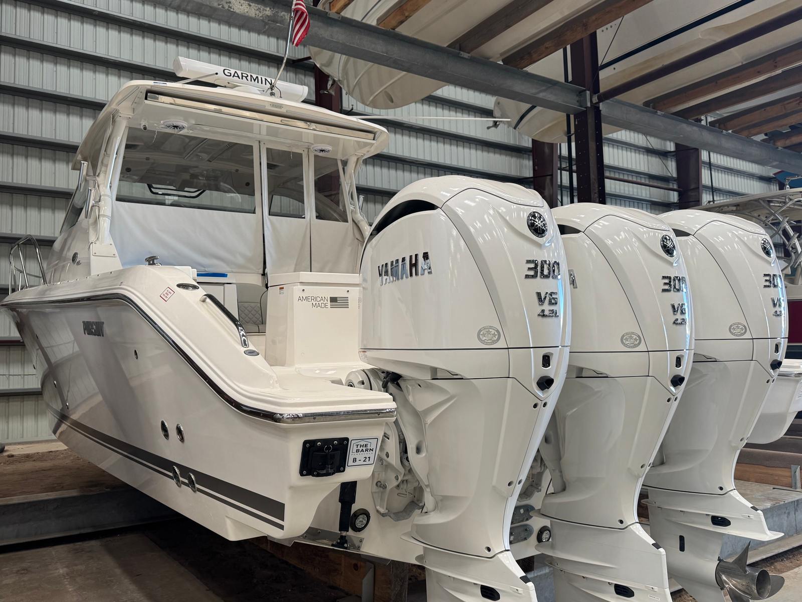 The Pursuit OS 355 Cruiser is designed with both functionality and luxury in mind. Its spacious layout allows for comfortable seating, generous deck space, and easy movement throughout the boat. The 37.92-foot length ensures that you have plenty of room for guests, gear, and activities, making it a versatile platform for everything from family outings to entertaining friends. Pursuit’s attention to detail is evident in the quality of materials, the thoughtful design of the cabin and cockpit, and the overall fit and finish of the boat.Special features of the Pursuit OS 355 include its triple-engine configuration, which not only enhances performance but also provides added reliability and safety. The engines’ combined 900 horsepower allows for swift acceleration and smooth cruising, while the low engine hours mean you can enjoy peace of mind knowing the boat is in excellent condition. The used status of this Pursuit boat for sale offers a fantastic opportunity to own a nearly new vessel at a competitive price, making it a smart investment for boating enthusiasts.