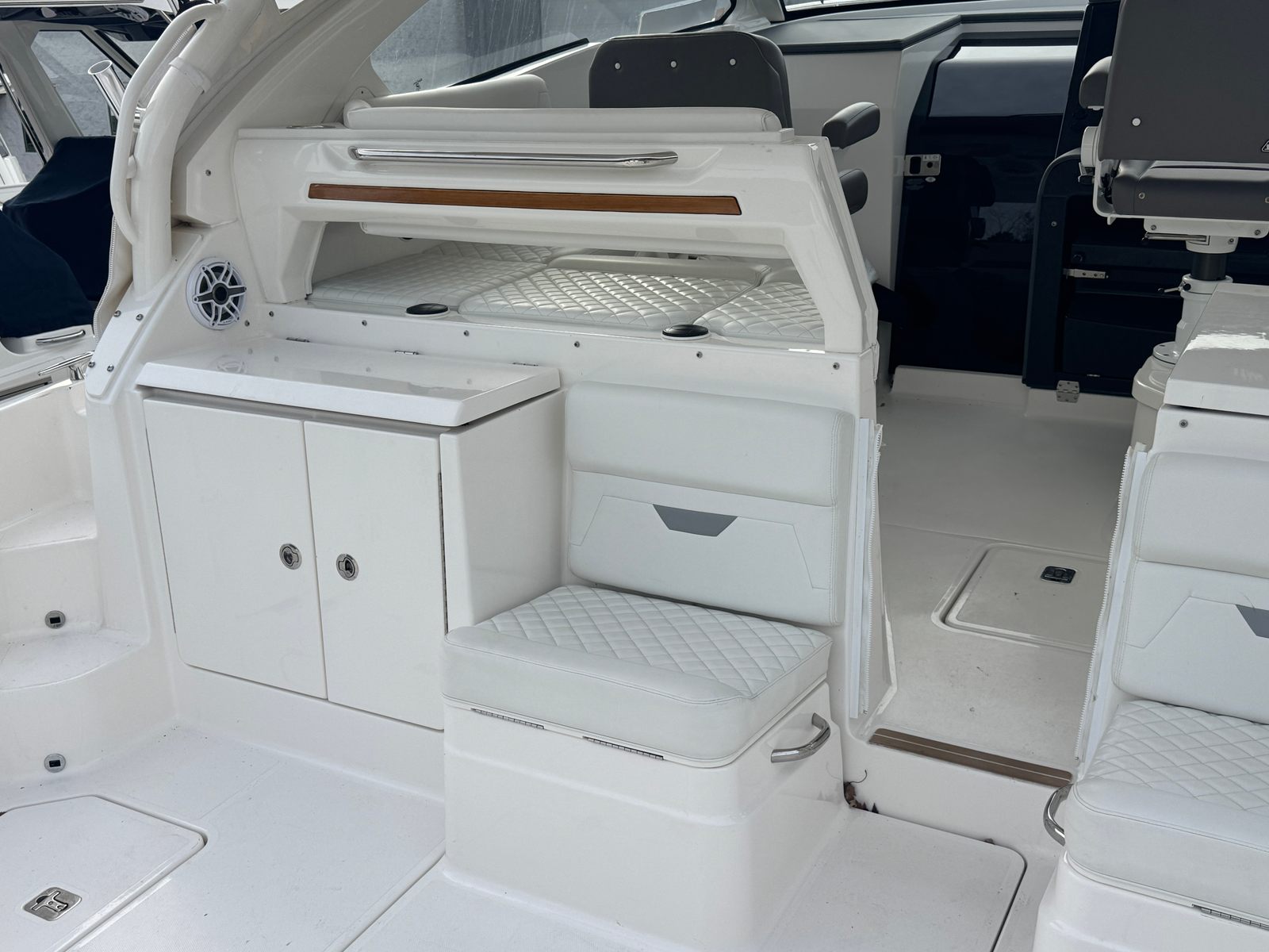 The Pursuit 405 OS is packed with features designed to enhance your boating experience. Its spacious 43-foot length provides plenty of room for guests, while the thoughtfully designed layout ensures comfort and convenience at every turn. The helm station offers excellent visibility and intuitive controls, making navigation a breeze. The cockpit and cabin areas are crafted with premium materials, reflecting Pursuit’s attention to detail and commitment to luxury.Special features of the Pursuit 405 OS include advanced navigation systems, plush seating, and ample storage options. The boat’s design maximizes both indoor and outdoor living spaces, allowing you to enjoy the sun, sea, and scenery in style. Whether you’re hosting a sunset cocktail party or enjoying a quiet morning on the water, this Pursuit boat for sale is equipped to meet your every need.