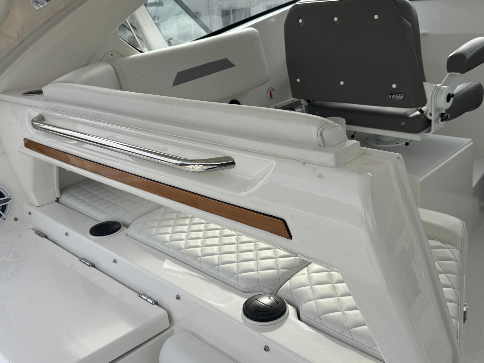 Equipped with three powerful engines, the Pursuit 405 OS boasts a combined 1350 horsepower, ensuring a thrilling ride and responsive handling. With only 1 engine hour, these motors are virtually new, promising years of reliable performance and efficiency. The triple-engine setup provides impressive acceleration, smooth cruising, and the ability to tackle a variety of water conditions with confidence. Whether you’re navigating coastal waters or exploring inland lakes, this cruiser boat for sale offers the perfect balance of speed and stability.