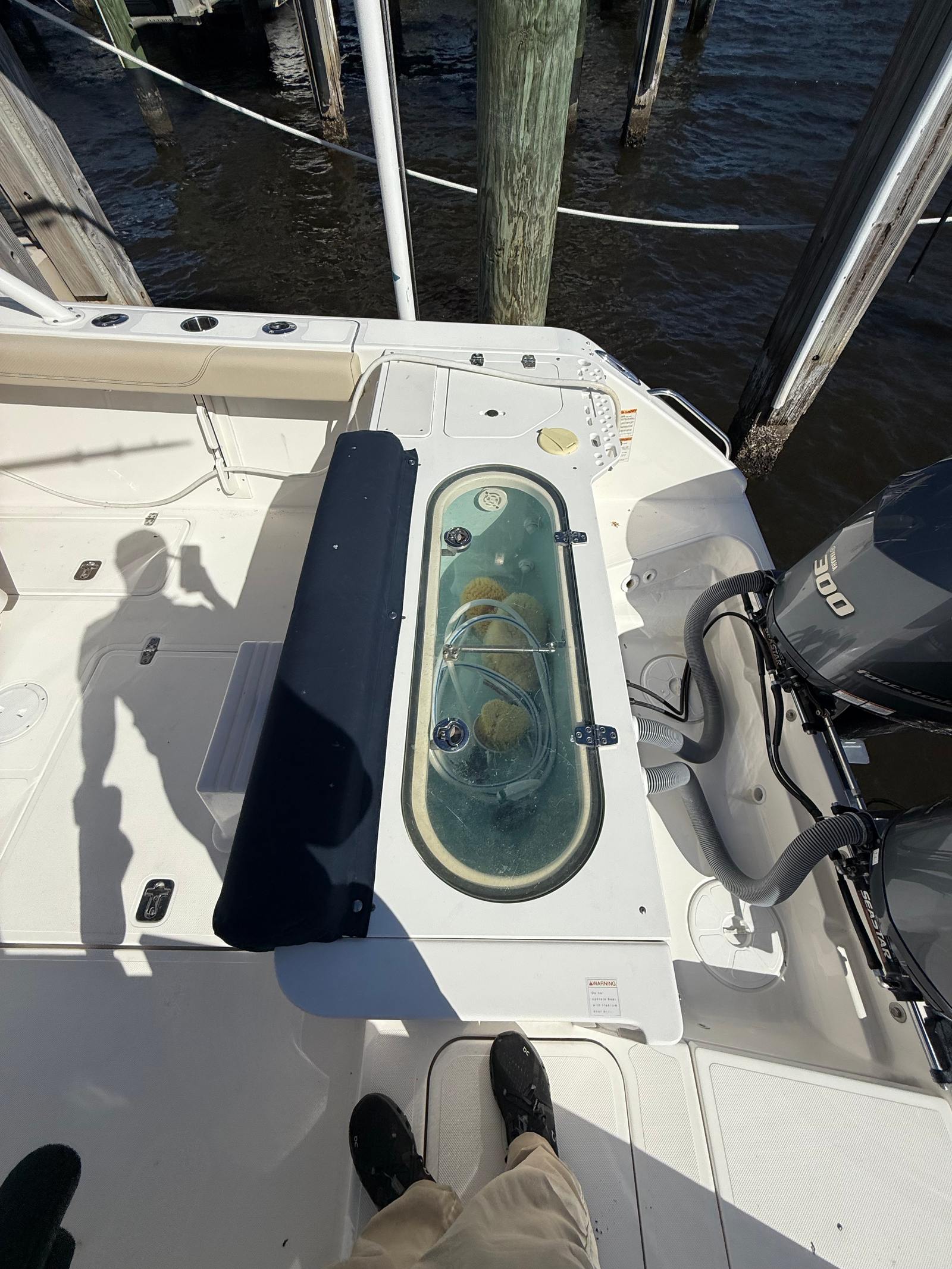 Power and precision define the performance of the Pursuit S 280. Equipped with twin engines delivering a combined 600 horsepower, this center console boat offers an exhilarating ride and responsive handling. With only 220 engine hours, these engines have plenty of life left, providing peace of mind and reliability for your journeys. The dual-engine setup ensures optimal balance and maneuverability, making docking and navigating tight spaces a breeze. Whether you are chasing the horizon or cruising along the coastline, the Pursuit S 280’s performance capabilities will impress even the most discerning boating enthusiasts.