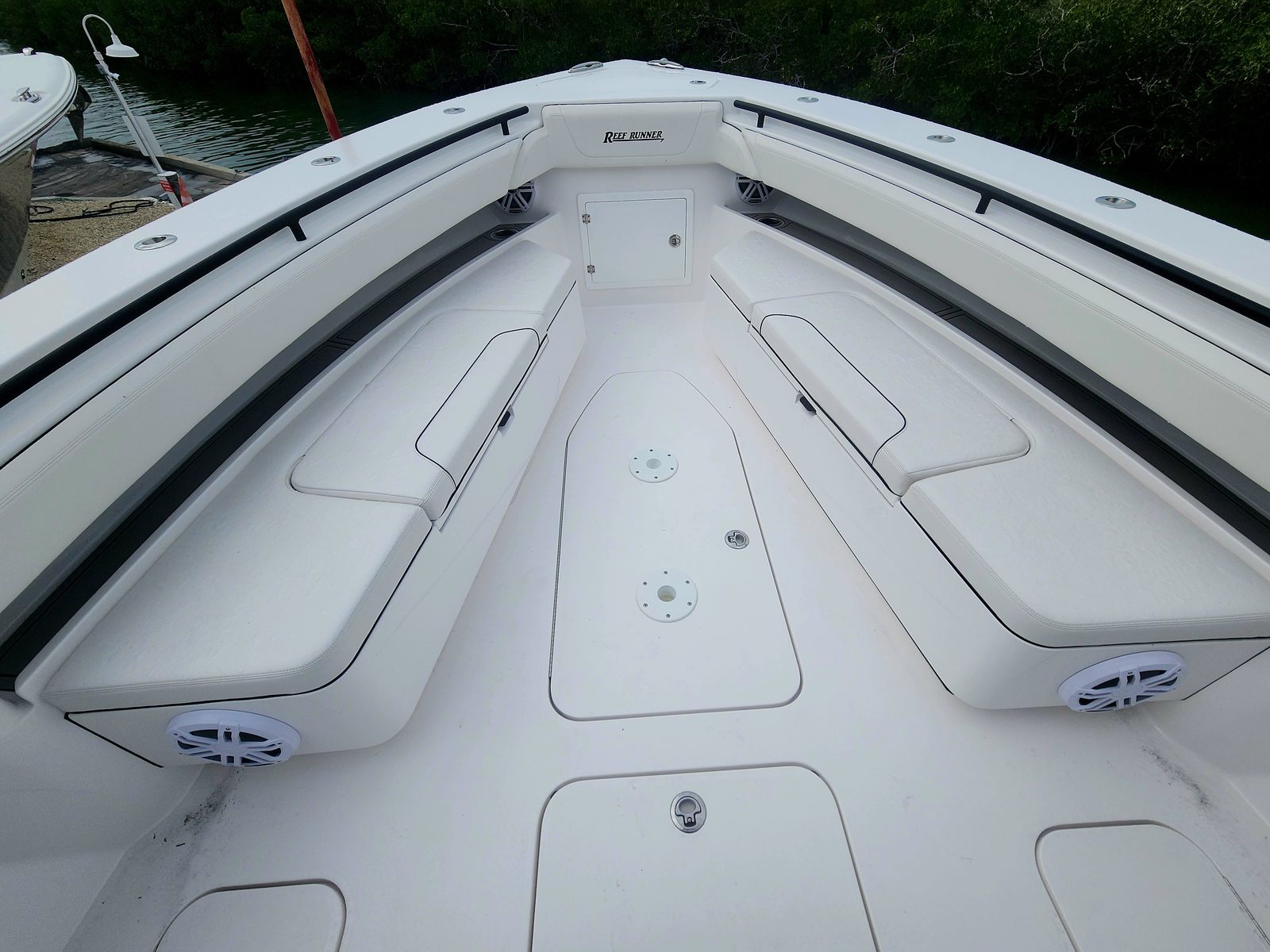 Owning a Reef Runner 340 Center Console opens up a world of fun and relaxation. The generous deck space is perfect for social gatherings, whether you’re hosting a sunset cruise with friends or a family day on the water. The Center Console layout encourages interaction and movement, allowing guests to mingle, fish, or sunbathe with ease. The powerful twin engines provide the speed and agility needed for water sports, island hopping, or reaching your favorite fishing spots quickly.Comfort is a priority on the Reef Runner 340, with ample seating and thoughtful design touches that enhance every outing. The boat’s stability ensures a smooth ride, even in choppy conditions, so everyone on board can relax and enjoy the journey. The combination of performance, space, and comfort makes this Center Console boat for sale a standout choice for those who value both excitement and relaxation.