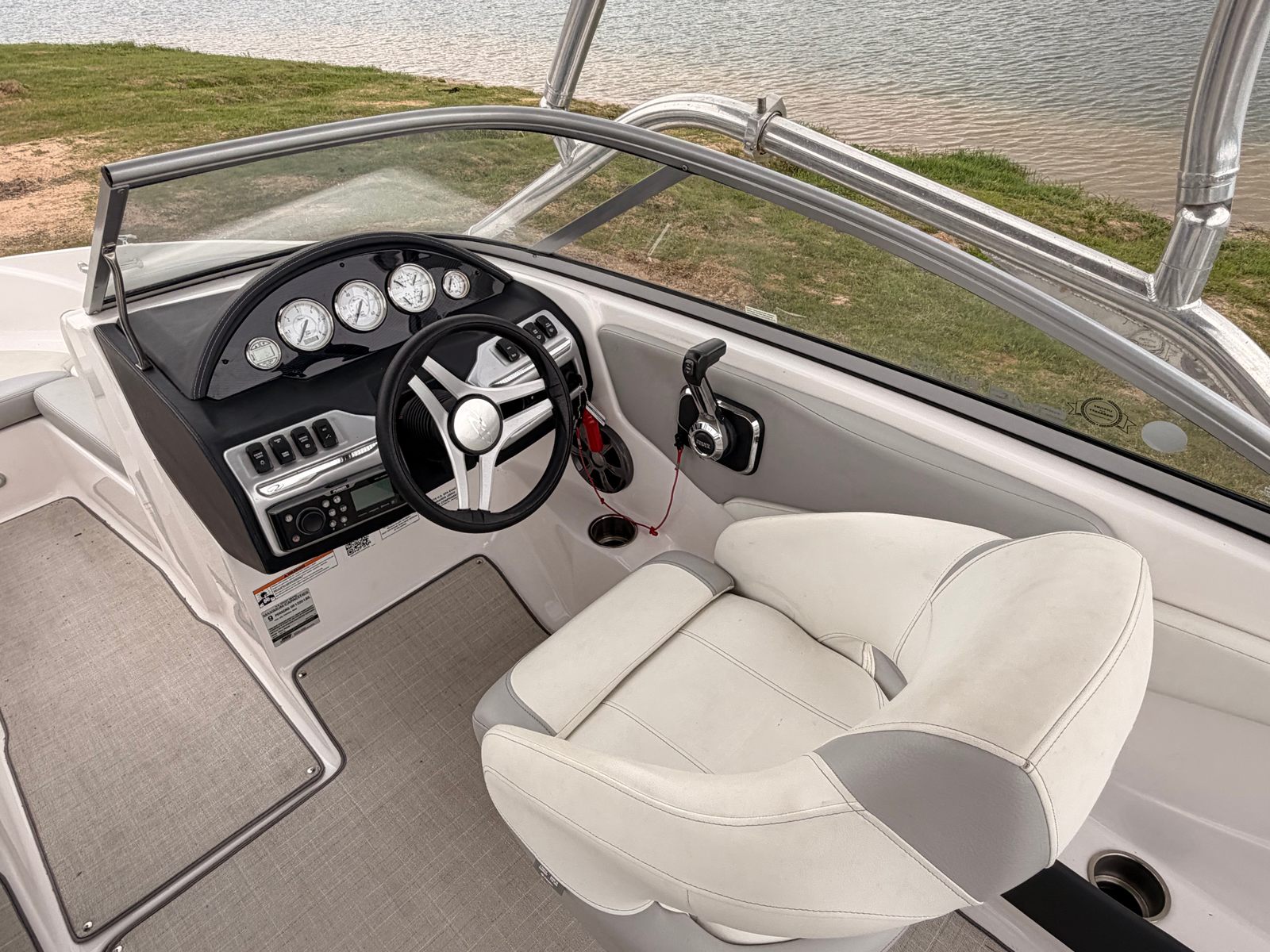 The Regal 1900 ES is packed with features designed to enhance your boating experience. Its spacious bow seating area invites guests to relax and soak up the sun, while the ergonomic cockpit layout ensures the captain has everything within easy reach. The boat’s nearly 20-foot length provides generous room for socializing, lounging, or gearing up for water sports. The 1900 ES is crafted with Regal’s signature attention to detail, from the quality upholstery to the stylish accents that set it apart from other bowriders.With a single engine configuration, this used Regal boat for sale is straightforward to operate and maintain, making it an excellent choice for both seasoned boaters and those new to the water. The 200-horsepower engine offers the perfect balance of power and efficiency, ensuring you can enjoy long days on the water without frequent fuel stops.