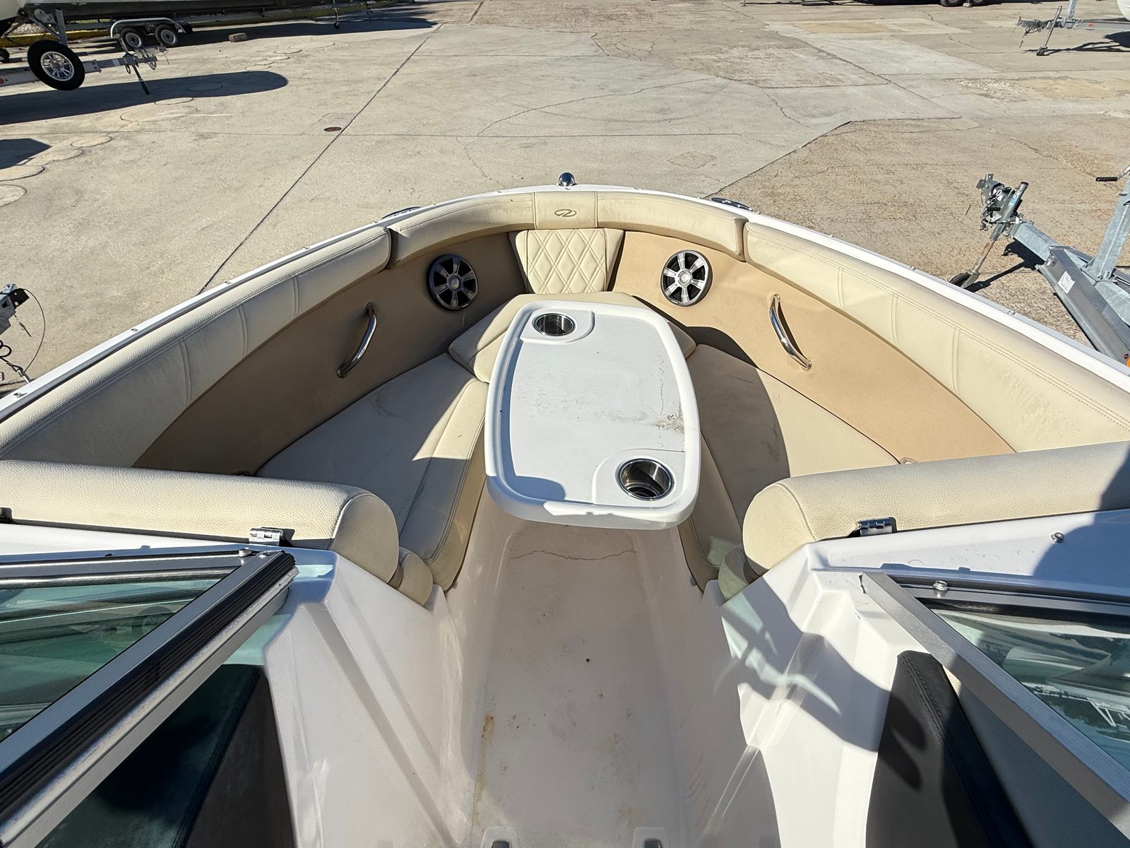 The Regal 21 OBX Bowrider is packed with features that enhance your time on the water. Its spacious bow seating area provides ample room for friends and family to relax and soak up the sun. The ergonomic helm station is designed for comfort and control, allowing you to command the boat with ease. The open deck layout ensures effortless movement throughout the vessel, making it perfect for socializing, lounging, or gearing up for water sports.With a length of 21 feet, this Bowrider offers generous storage compartments to keep your gear organized and out of the way. The thoughtful design includes convenient cup holders, integrated swim platforms, and easy access to the water for swimming or boarding. The high-quality upholstery and durable materials used throughout the boat reflect Regal’s attention to detail and commitment to lasting value.