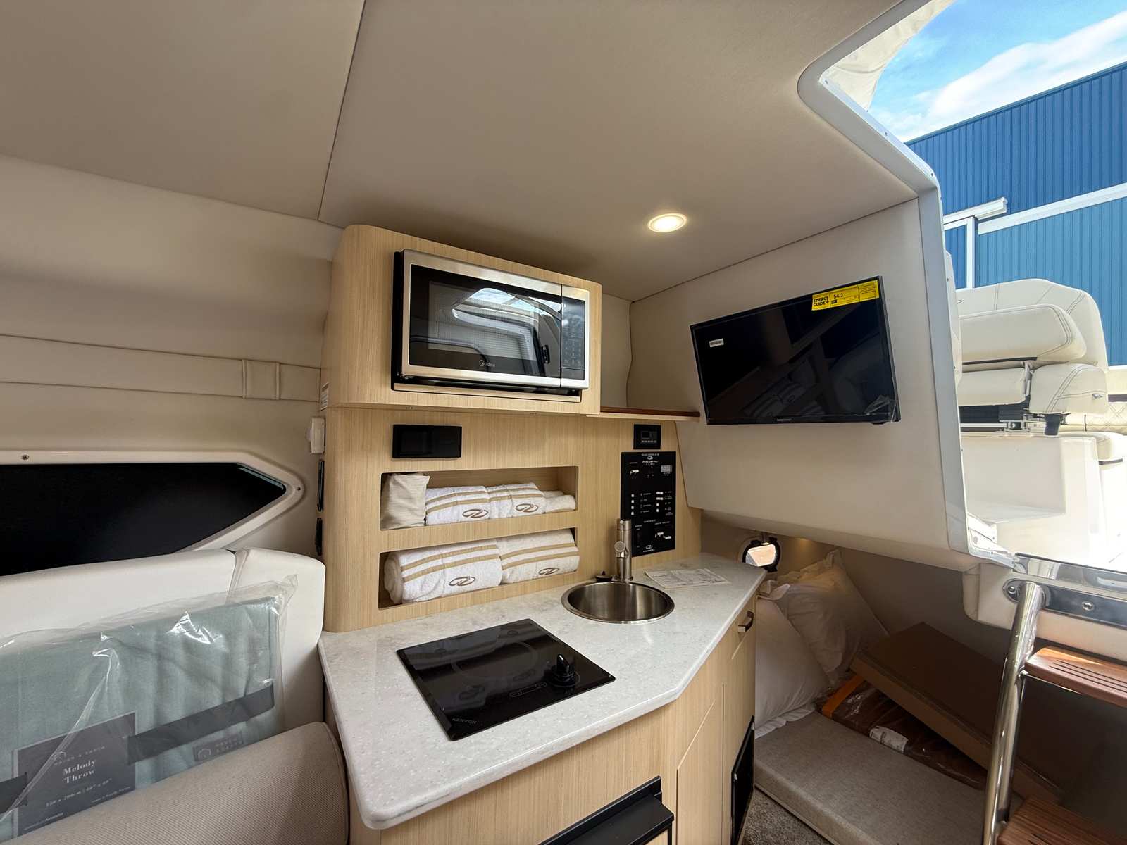 This new cruiser boat for sale is loaded with premium features designed to enhance your time on the water. The cockpit cover and White Stamoid Upgrade Bimini Top provide ample shade and protection from the elements, allowing you to relax in comfort regardless of the weather. The Mediterranean Blue canvas and Snowcap Coastal accents add a touch of elegance and style, while the Mosaic countertops in the galley area offer a modern, upscale feel.For those who appreciate convenience and comfort, the Regal 26 XO is equipped with a gas-powered 110V generator and air conditioning, ensuring a pleasant onboard environment even during the hottest summer days. The bow thruster adds an extra layer of control, making docking and close-quarters maneuvering a breeze. Every detail of this Regal boat for sale is thoughtfully designed to maximize your enjoyment and minimize hassle.