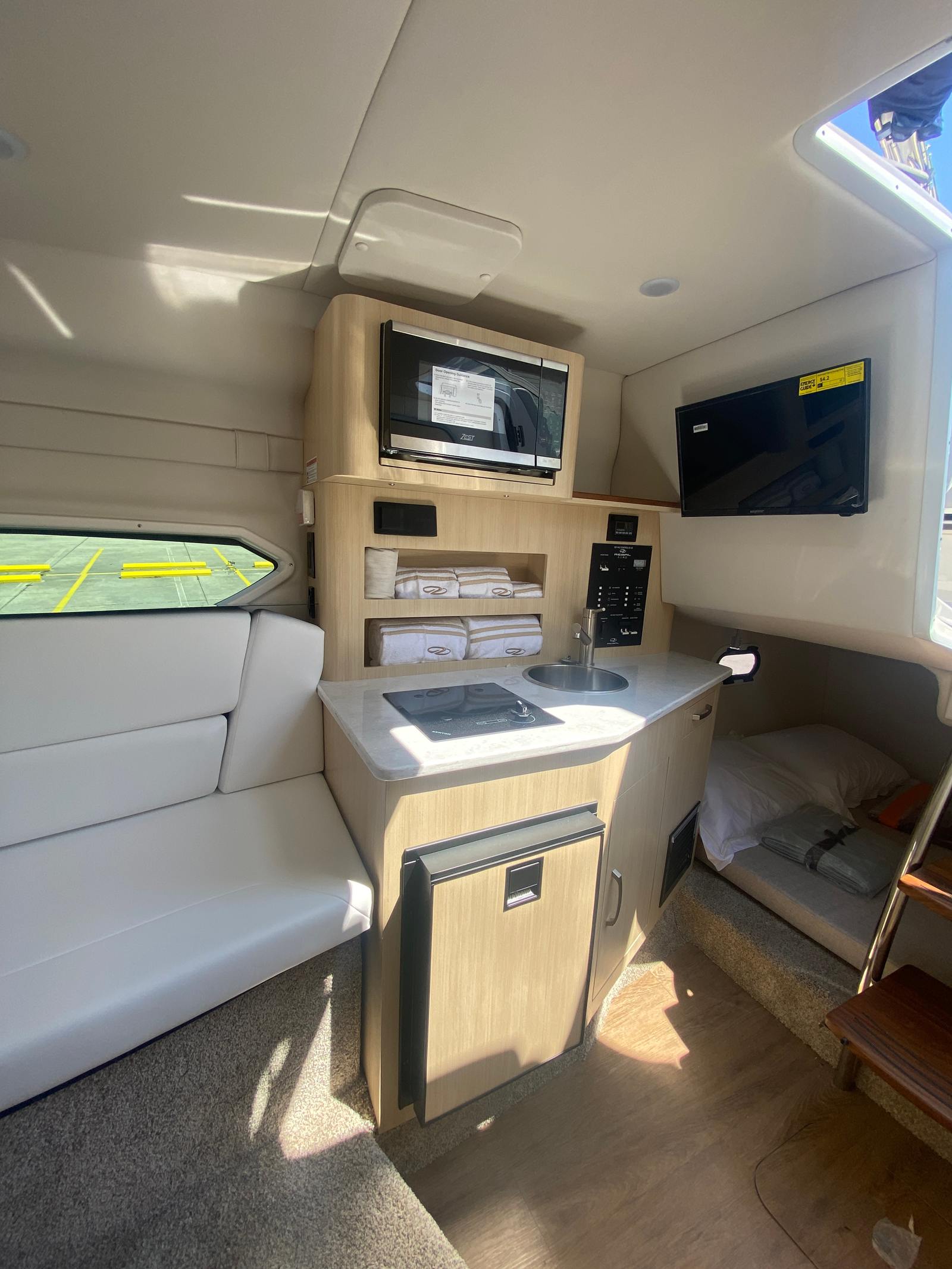 The Regal 26 XO is designed with practicality in mind, making ownership both enjoyable and hassle-free. The generous length of 27.25 feet provides ample storage space for all your gear, from water toys to picnic supplies. The efficient Yamaha F350XSA2 engine helps you make the most of your time on the water, offering a balance of power and fuel economy.Docking and maneuvering are made easier thanks to the boat’s responsive handling and well-thought-out design. The cockpit seagrass mat not only adds comfort but also makes cleaning up after a day on the water a breeze. With the gas 110V generator, you can enjoy the convenience of onboard power for your electronics and appliances, making overnight stays more comfortable and enjoyable.