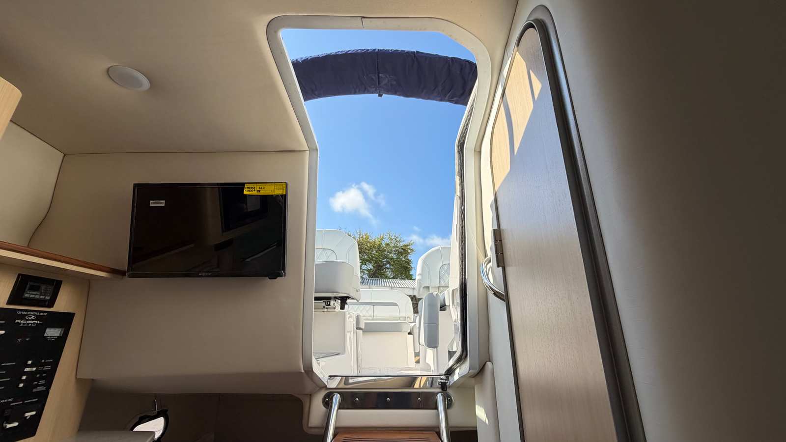 The 2026 Regal 26 XO is equipped with a range of special features that elevate your boating experience to new heights. The aft vent matches the bootstripe color, creating a seamless and stylish exterior appearance. The Mediterranean Blue canvas adds a touch of elegance, while the cockpit cover and full enclosure provide protection from the elements, ensuring comfort in various weather conditions. Step onto the cockpit seagrass mat and enjoy the plush, inviting feel underfoot, enhancing the overall onboard ambiance.Inside, the Snowcap and Coastal interior themes offer a fresh and modern aesthetic, complemented by mosaic countertops that add a touch of sophistication to the galley area. For those who value convenience and comfort, the gas generator (110V) ensures you have reliable power for all your onboard needs, while the air conditioning system keeps the cabin cool and comfortable, even on the hottest summer days.