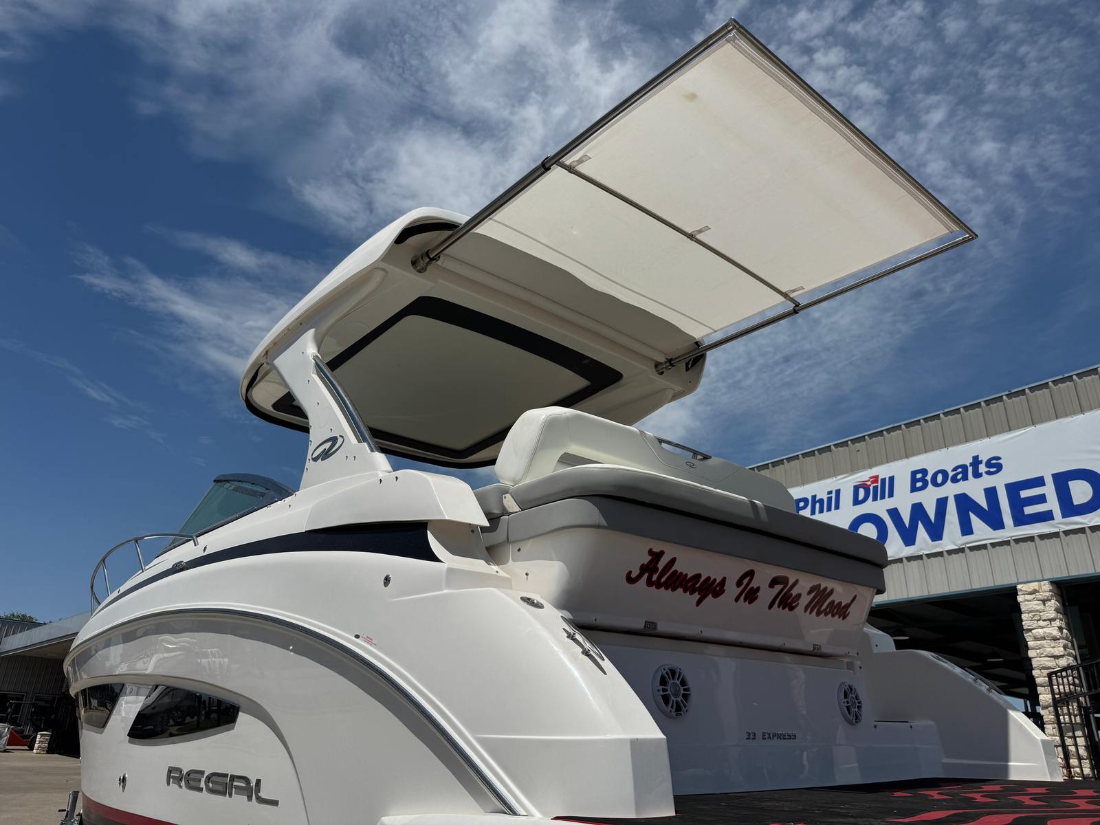 The 2023 Regal 33 Express is a modern marvel in the world of Express Cruiser boats. Measuring 32.25 feet in length, this vessel offers ample space for entertaining, relaxing, and enjoying the open water. Its contemporary lines and sophisticated profile make it a head-turner at any marina, while the Regal name ensures you’re investing in a boat renowned for quality and innovation. As a used Express Cruiser, this model provides the opportunity to experience premium boating at a competitive price point, making it an attractive option for both seasoned boaters and newcomers alike.