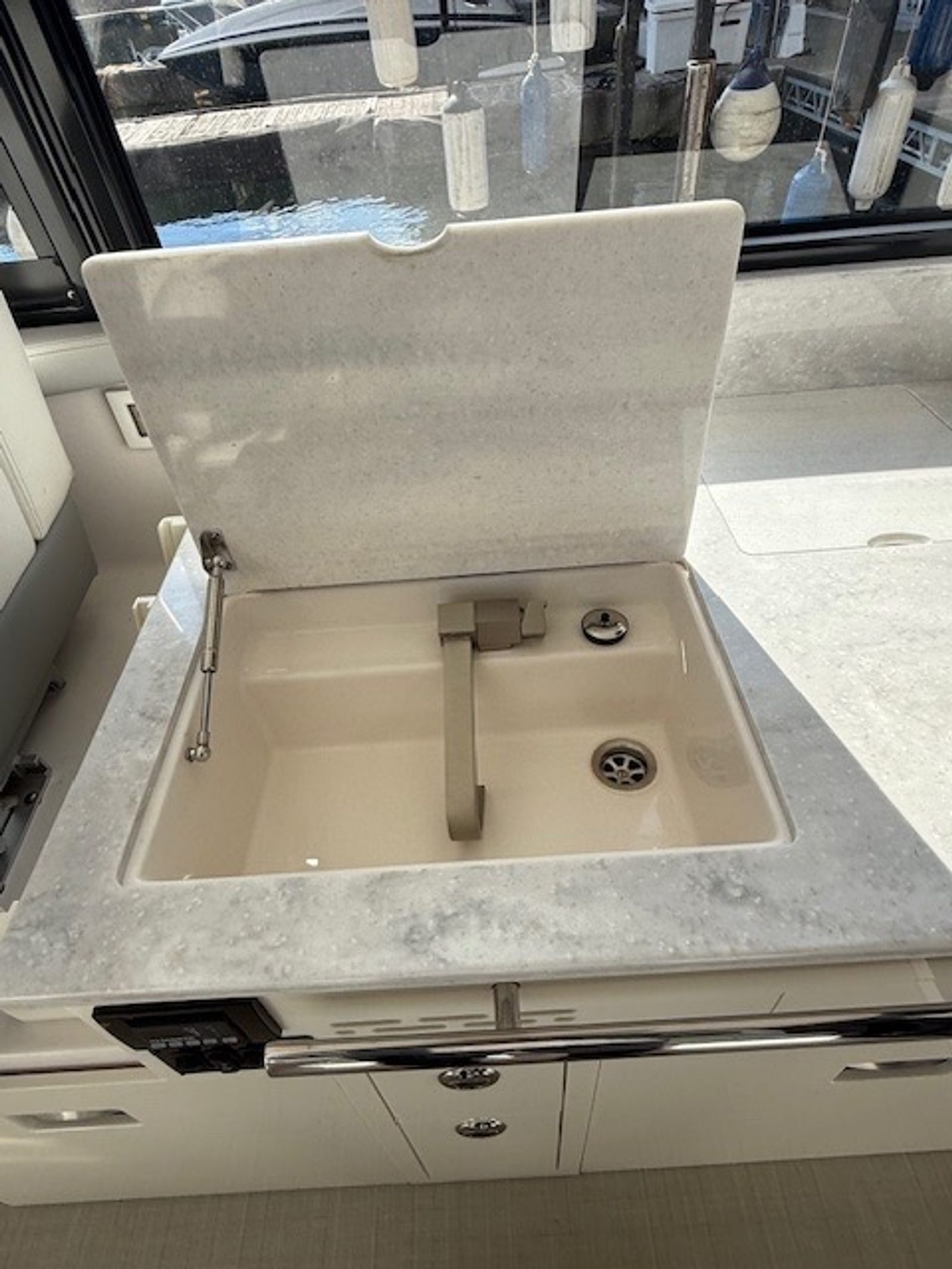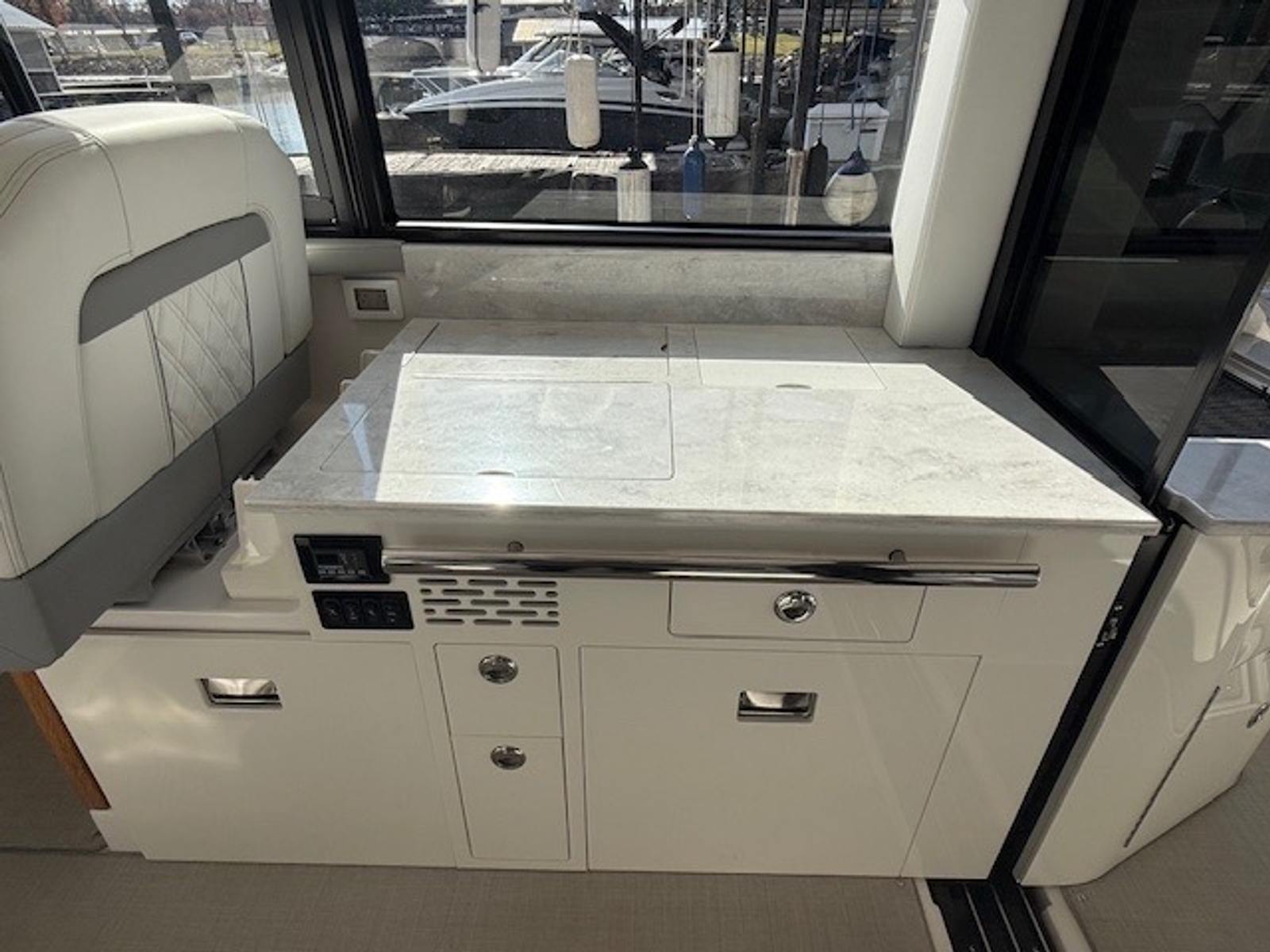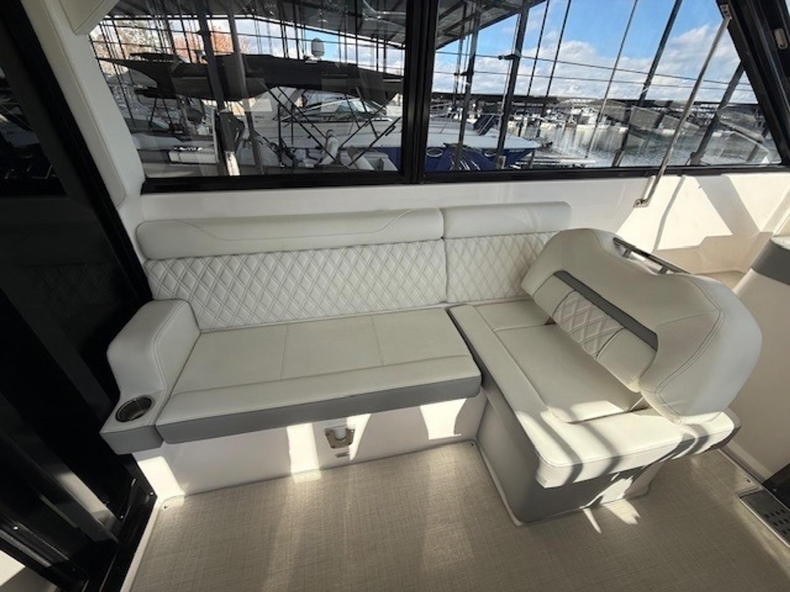 Twin Volvo V8 350 DP engines deliver smooth handling, strong acceleration, and confident maneuverability—perfect for both cruising open waters and docking in tight spaces. With only 126 engine hours, you’ll enjoy reliable performance and peace of mind for seasons to come.
