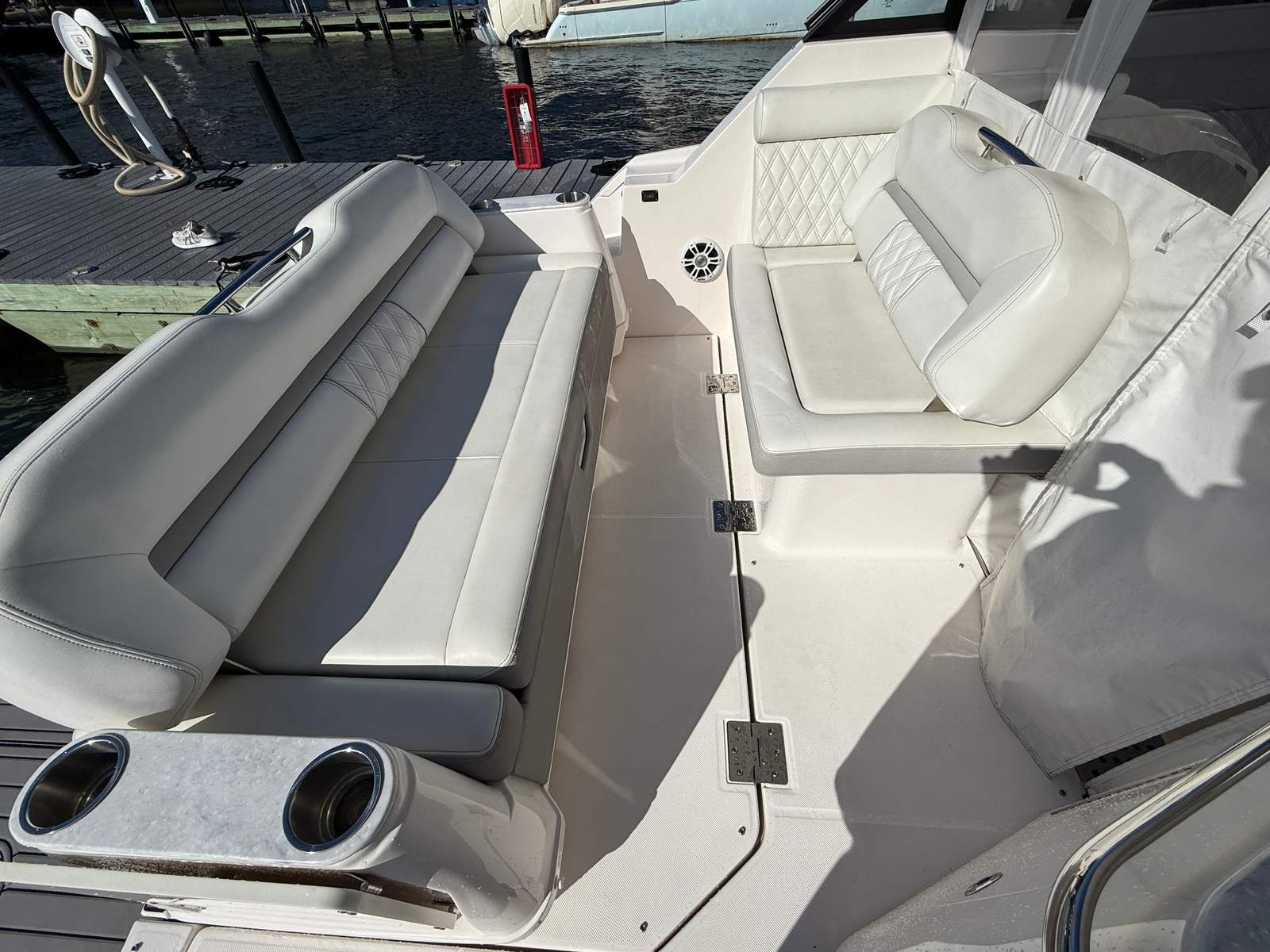Owning a Regal 36 Grande Coupe means embracing a lifestyle of fun, relaxation, and adventure. This cruiser is designed for those who appreciate the finer things in life, offering a perfect balance of comfort and excitement. The spacious deck is ideal for hosting gatherings, enjoying alfresco meals, or lounging with family and friends. The smooth ride and powerful engines ensure that every outing is both thrilling and enjoyable, while the refined interior provides a welcoming retreat after a day of fun in the sun. With its impressive size and thoughtful layout, the 36 Grande Coupe is perfect for creating lasting memories on the water.