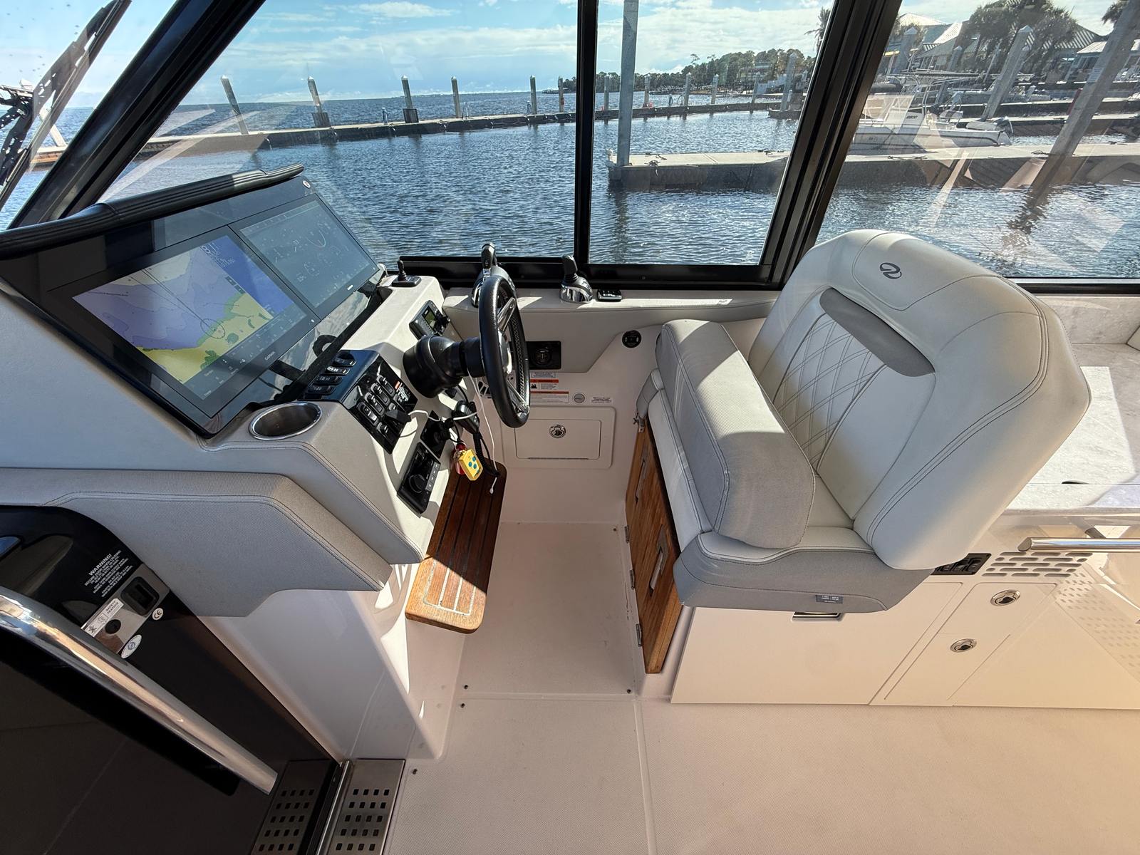 Under the hood, the 2021 Regal 36 Grande Coupe is powered by twin engines, delivering a combined 700 horsepower. With 528 engine hours, these engines have been well maintained and are ready to provide reliable performance for many more adventures. The robust powertrain ensures smooth acceleration, responsive handling, and the ability to cruise effortlessly at a variety of speeds. Whether you are navigating open waters or docking at your favorite waterfront restaurant, the 36 Grande Coupe offers the confidence and control you expect from a premium cruiser boat for sale.