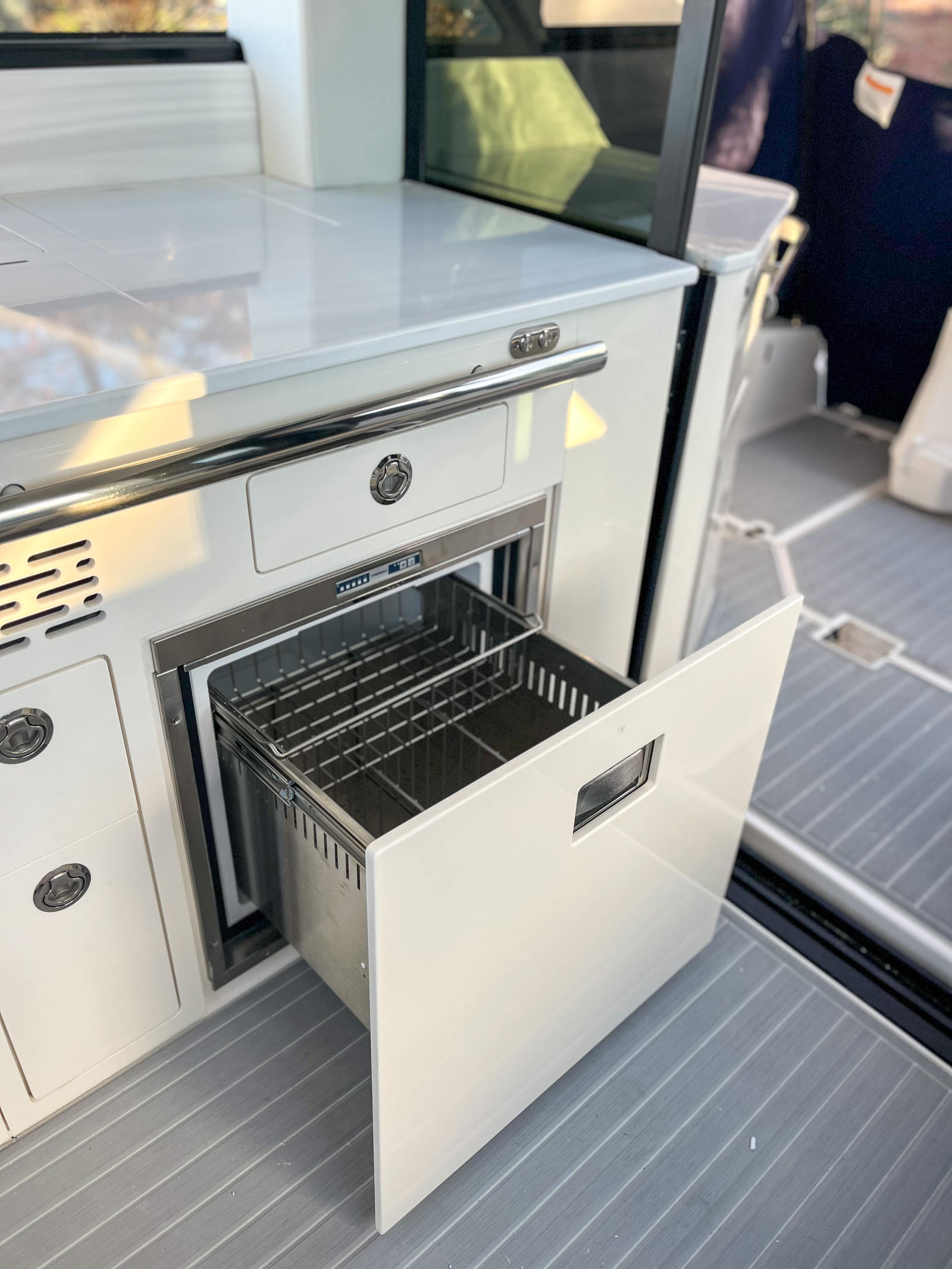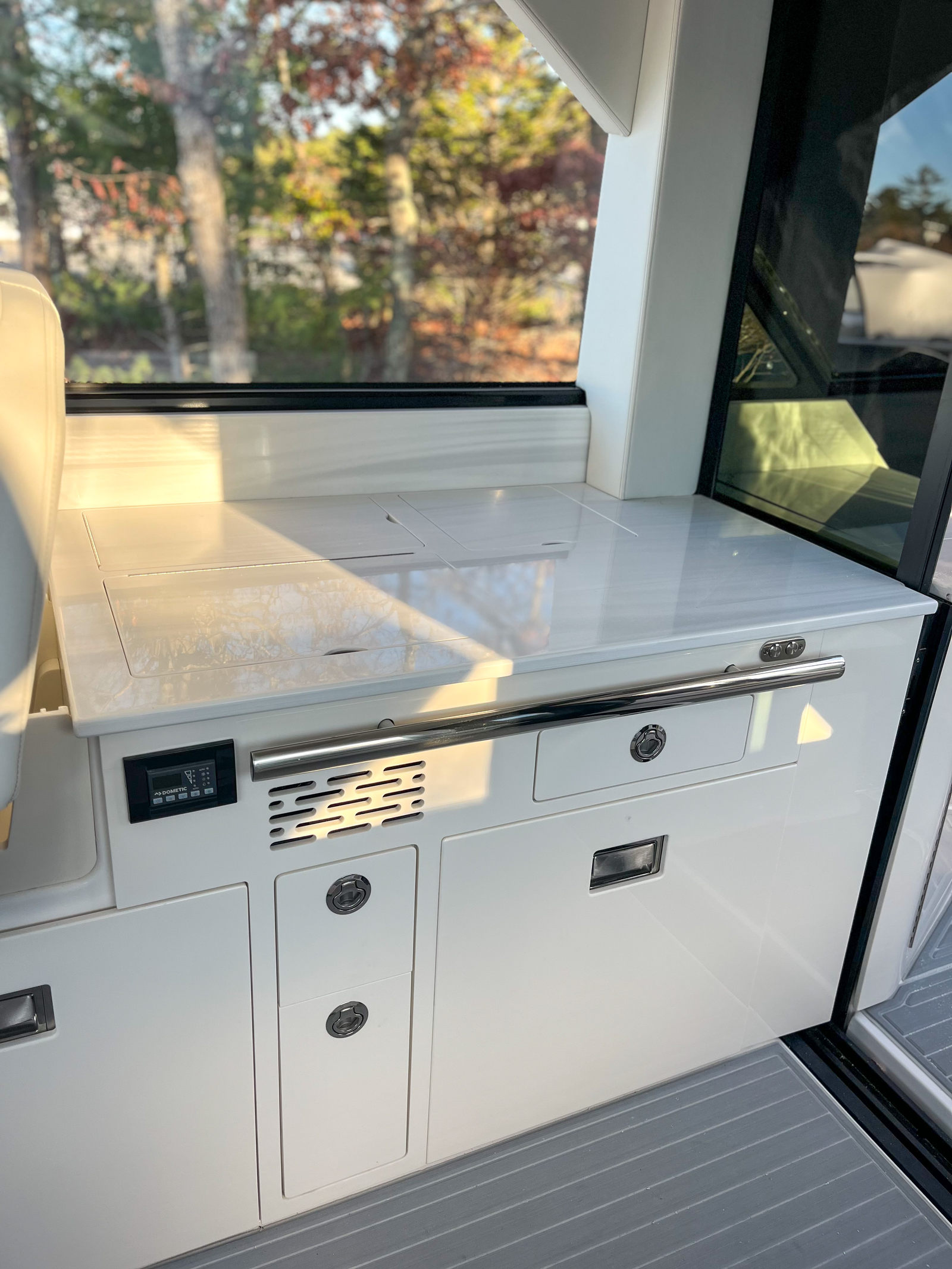 Powering the Regal 36 XO are twin Yamaha F450UCA2 engines, finished in striking white. Together, these engines deliver a robust 900 horsepower, ensuring exhilarating speed and smooth handling. Whether you’re cruising along the coast or venturing out for a day of exploration, the Regal 36 XO’s advanced propulsion system offers reliable performance and impressive maneuverability. The combination of twin engines and cutting-edge technology means you can expect a responsive ride, efficient fuel consumption, and the confidence to tackle a variety of water conditions.