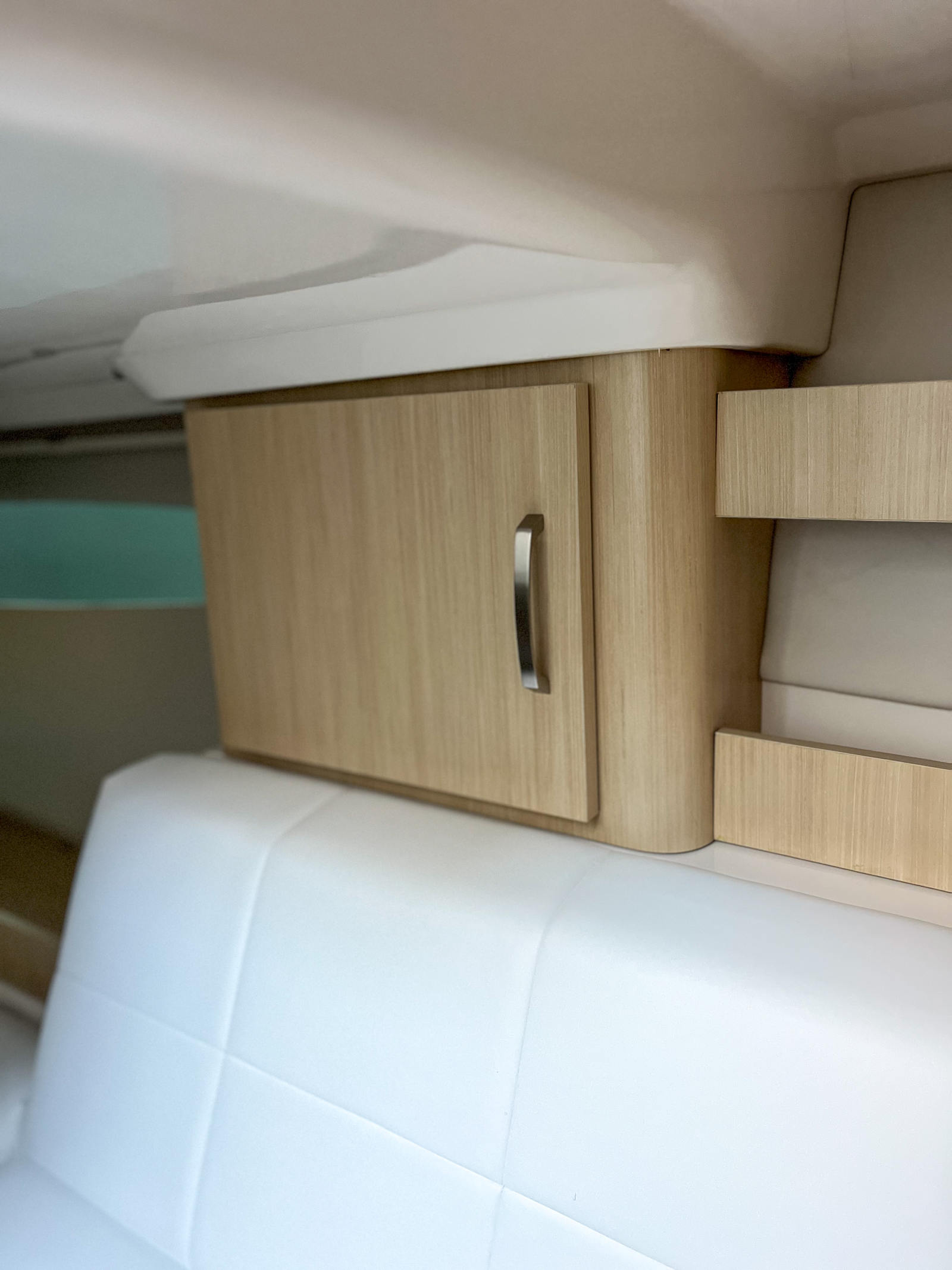 Step aboard the Regal 36 XO and discover a world of premium features designed for comfort and convenience. The yacht’s coastal package enhances its versatility, making it ideal for both short trips and extended journeys. The Mediterranean Blue canvas adds a touch of elegance, while the salon floor in toasted oak creates a warm, inviting atmosphere. Strato Wind countertops provide a modern aesthetic and durable workspace for onboard entertaining.Enjoy the convenience of the manual bow sunshade system, offering protection from the sun while you relax on deck. The titanium anchor windlass with rope and chain ensures secure anchoring, while the cockpit refrigerator keeps your refreshments chilled and ready. Stay connected and safe with the Garmin VHF radio, a vital tool for communication on the water.