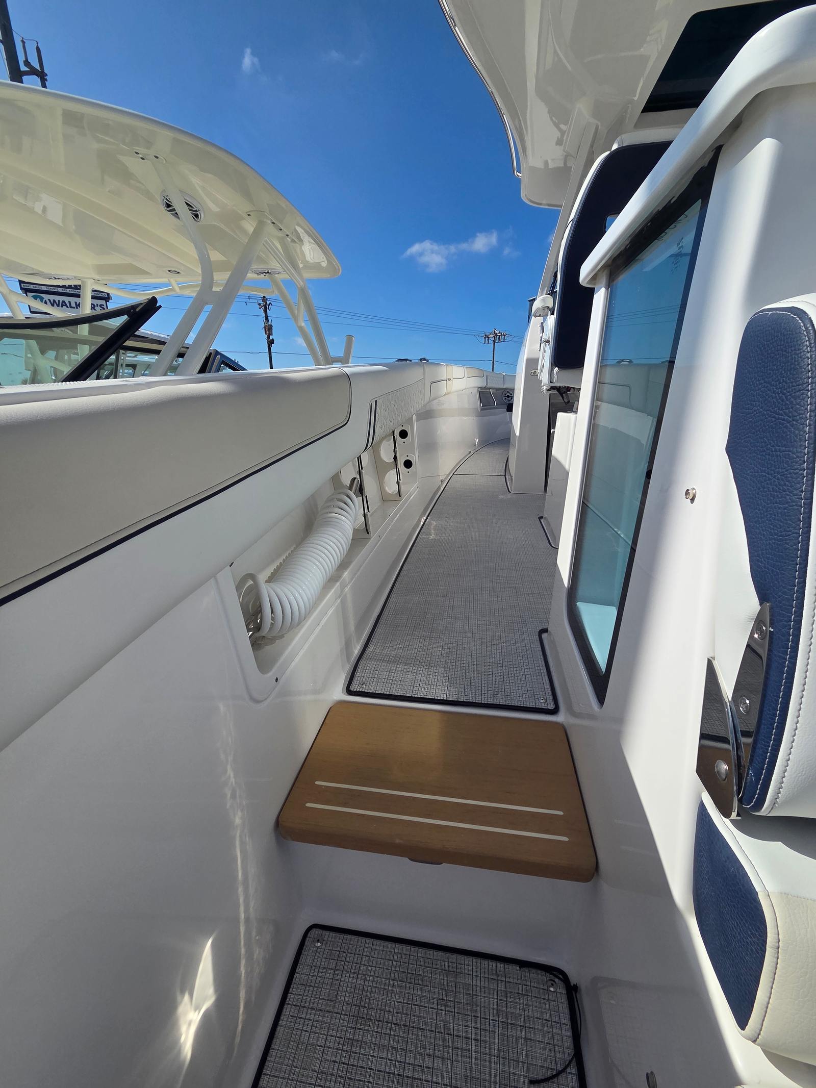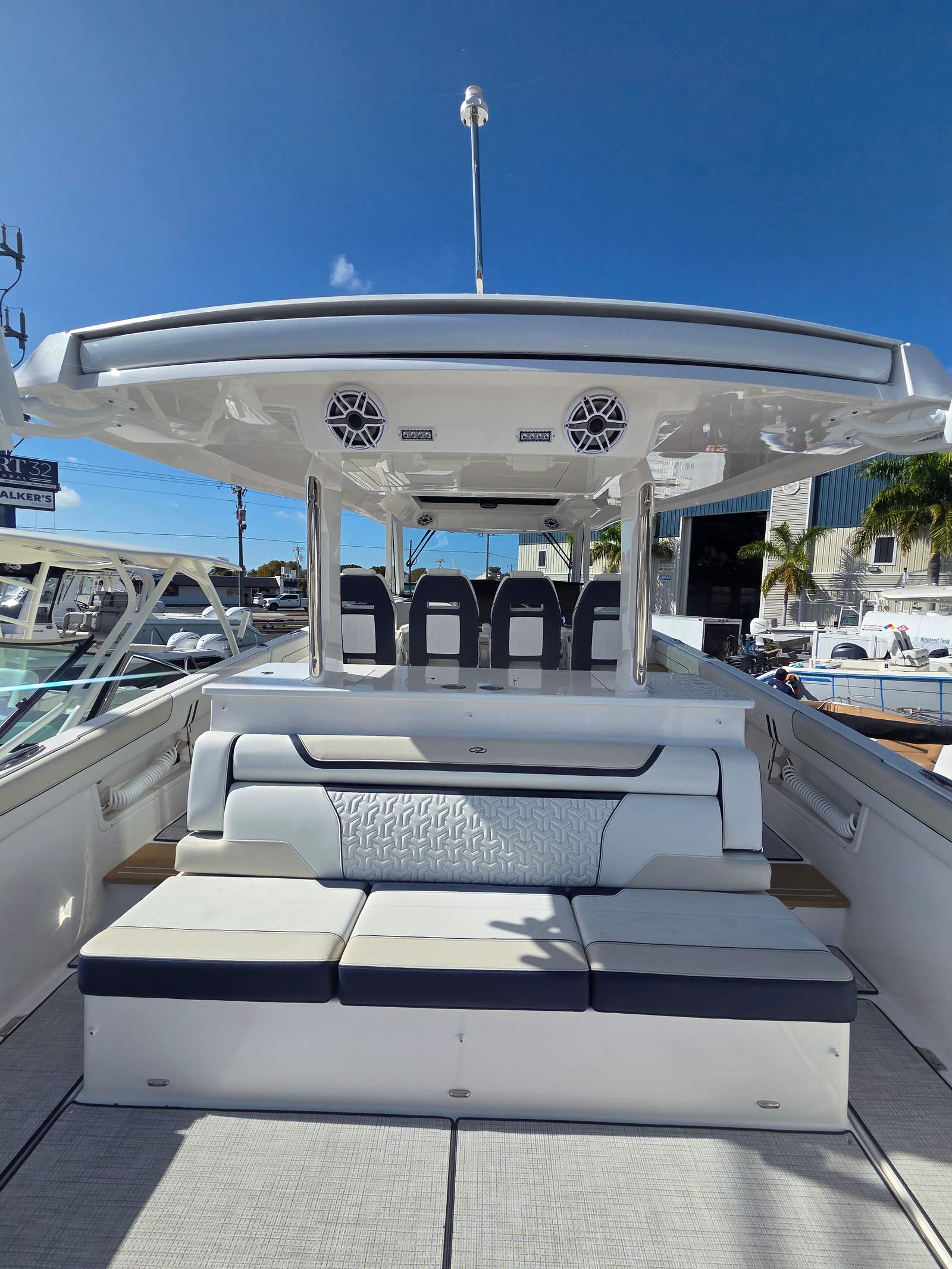 The Regal 38 SAV is packed with special features that enhance both convenience and enjoyment on the water. The overboard discharge toilet offers added comfort and practicality for extended trips, while the Ultimate Audio Package by JL Audio creates an immersive sound experience, perfect for entertaining guests or enjoying your favorite tunes. The anchor windlass with rope and chain makes anchoring effortless, adding to the yacht’s user-friendly design.A cockpit refrigerator keeps your refreshments chilled and easily accessible, while the Interior Color Zone 4 in Mediterranean Blue - Chil adds a touch of elegance and tranquility to the living spaces. The convertible transom seat offers flexible seating arrangements, allowing you to customize the layout to suit your needs. Fender clips provide secure and convenient storage for your fenders, and the cockpit television ensures you never miss out on entertainment, even while at sea. The bow filler cushion adds extra comfort for lounging, making every moment on board a pleasure.