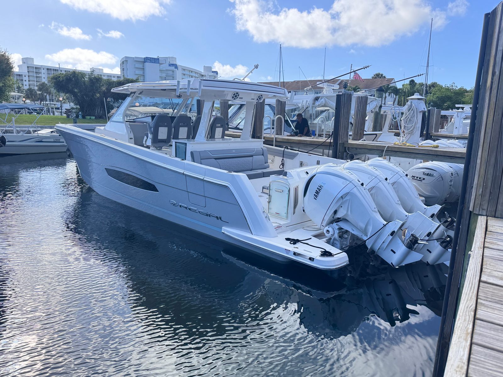 Owning the Regal 38 SAV opens the door to a world of fun, relaxation, and adventure. The spacious deck layout is perfect for hosting gatherings, whether you are enjoying a sunset cruise with friends or a lively family outing. The comfortable seating areas invite you to lounge in style, while the advanced sunshade systems ensure everyone stays cool and protected. The yacht’s premium finishes and thoughtful amenities create an environment where every moment on board feels special.The powerful triple Yamaha engines not only deliver thrilling performance but also provide the confidence to explore new destinations with ease. The integrated steering system enhances safety and maneuverability, making the 38 SAV accessible to both seasoned captains and those new to yachting. With its combination of speed, comfort, and versatility, this yacht is designed to make every journey memorable.