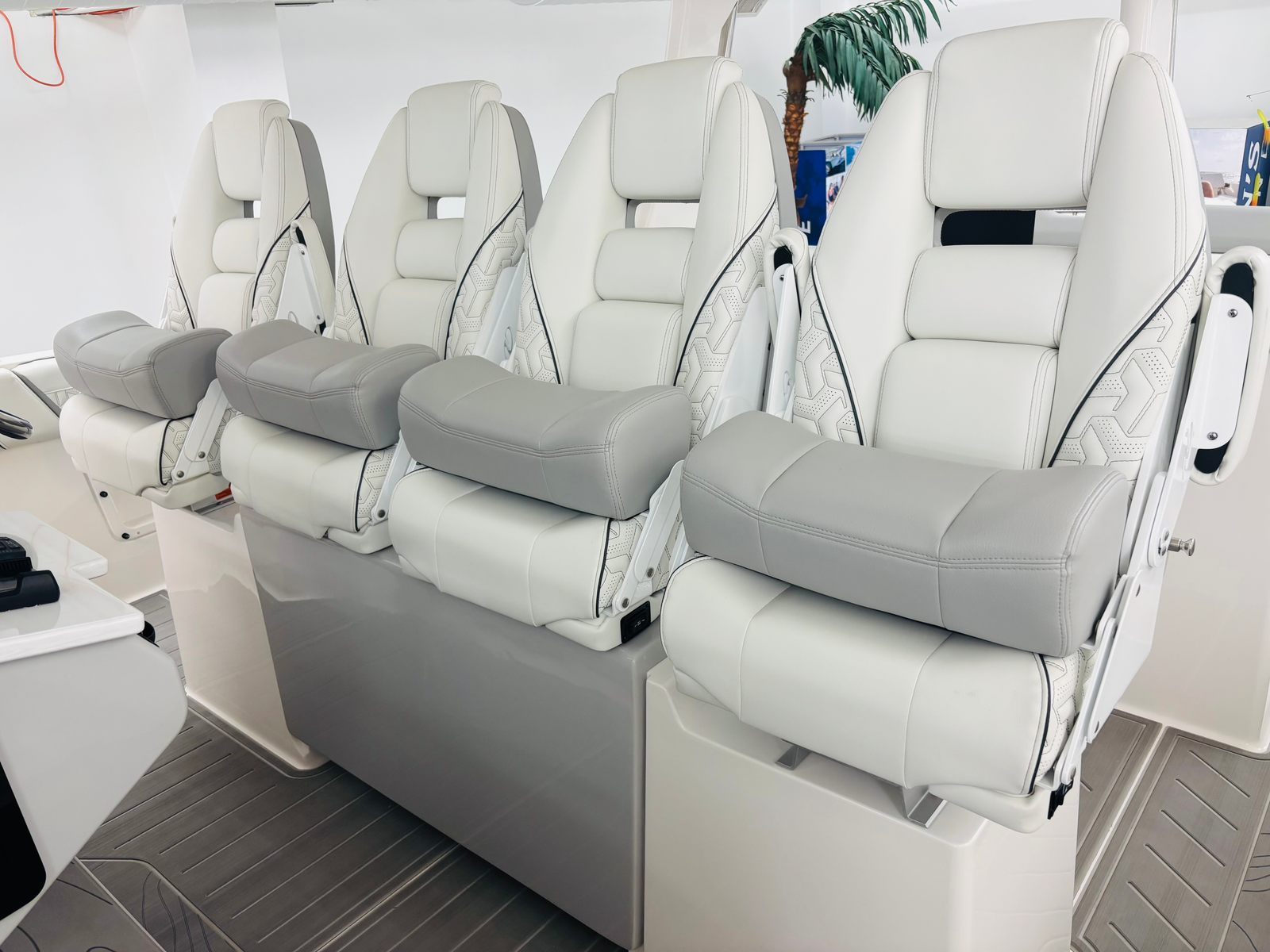 At the heart of the Regal 38 SAV is a trio of powerful Yamaha 350HP engines, delivering a combined 1,050 horsepower. These Triple Yamaha engines feature integrated steering and a striking white finish, ensuring not only robust performance but also a sophisticated appearance. The advanced engineering behind these engines provides smooth acceleration, impressive top speeds, and responsive handling, making every journey exhilarating. Whether you are cruising along the coastline or heading out for a day of adventure, the Regal 38 SAV offers the power and agility you need to navigate with confidence.