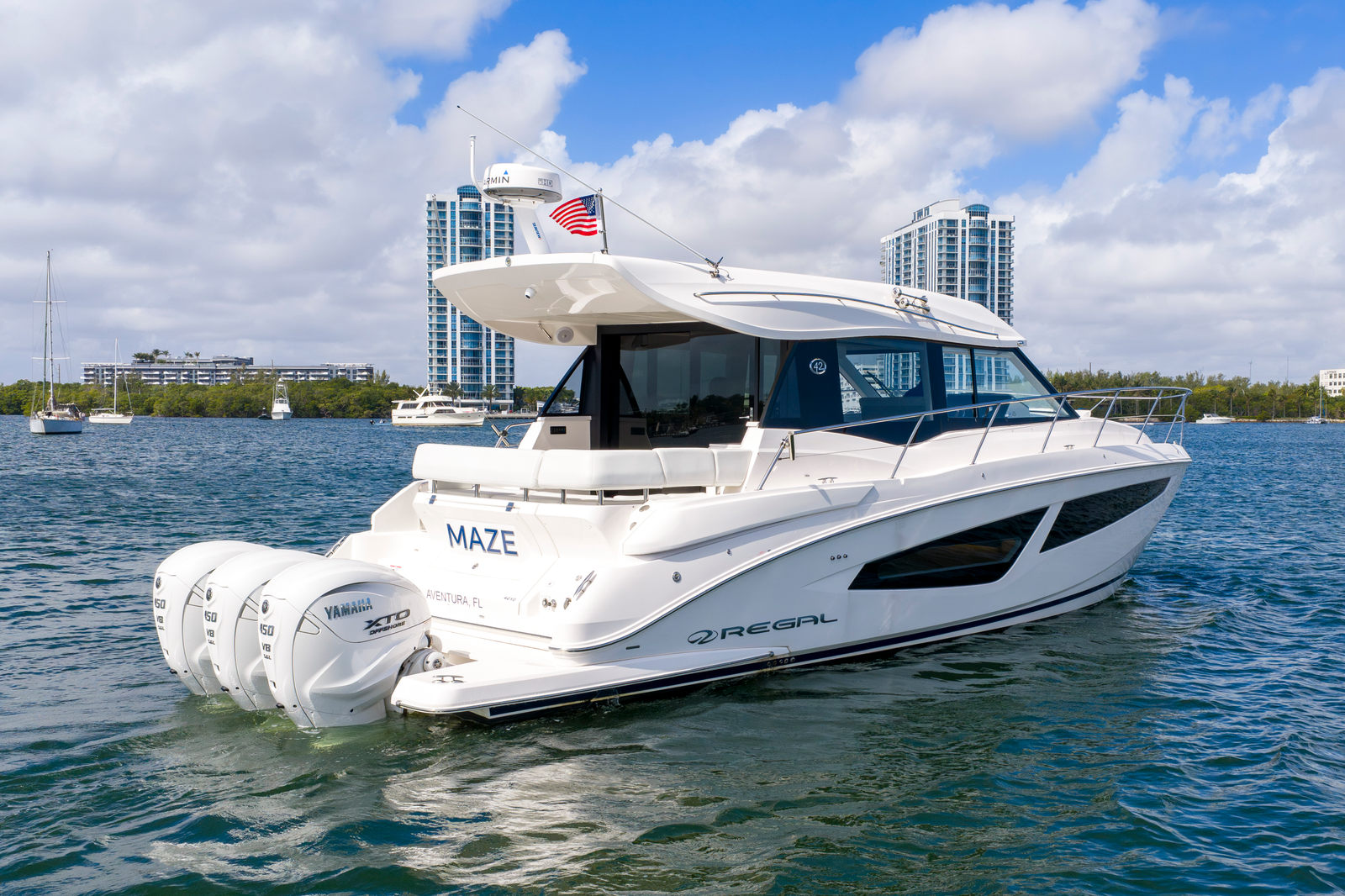 2024 Regal 42 XO – Low Hour | Seakeeper | Triple Yamaha 450s | DockMate | Humphrey Auto Trim Tabs