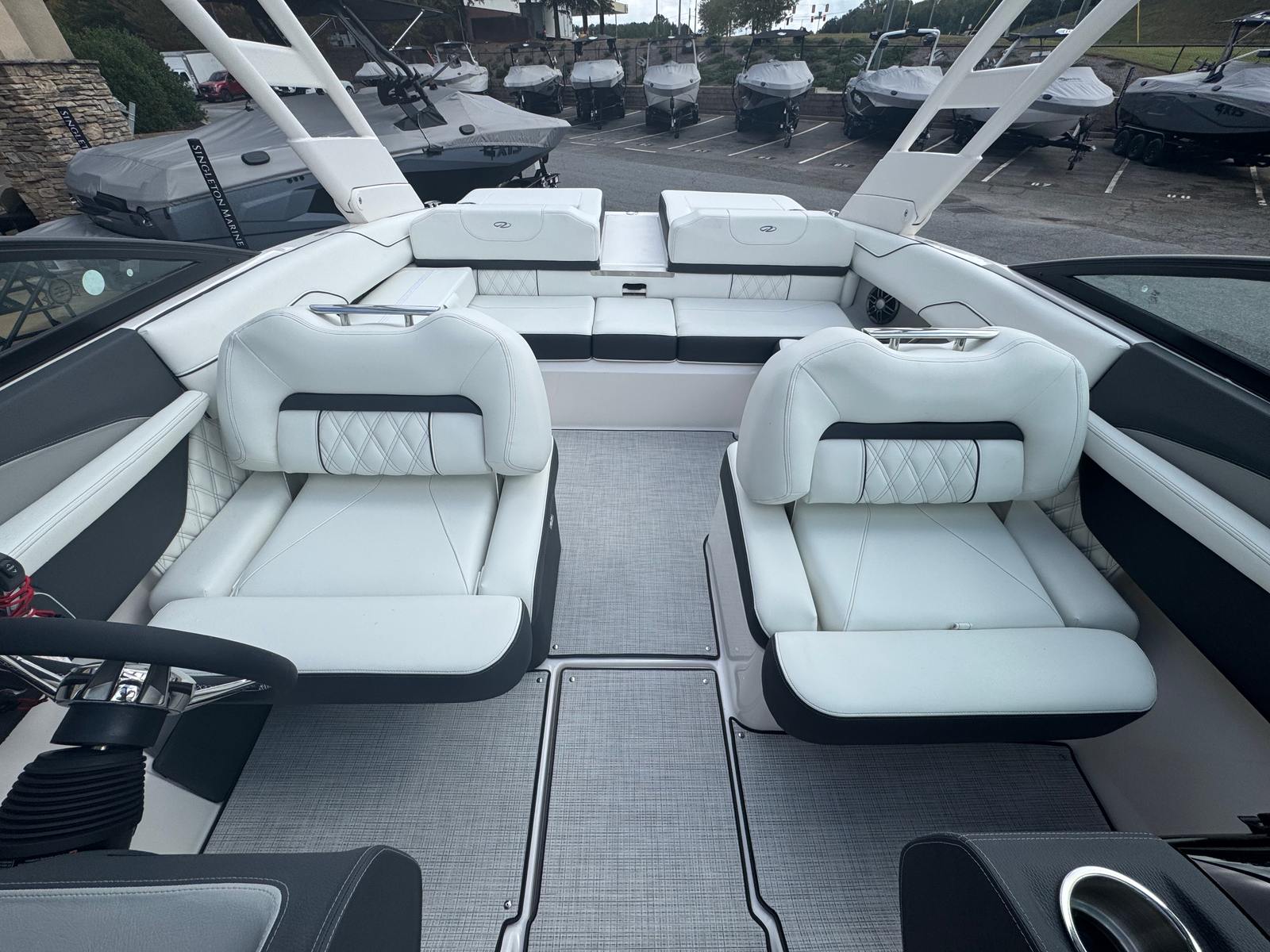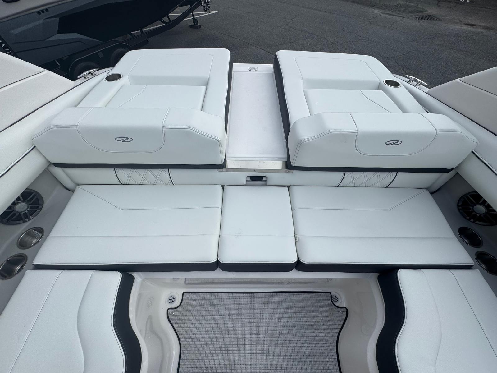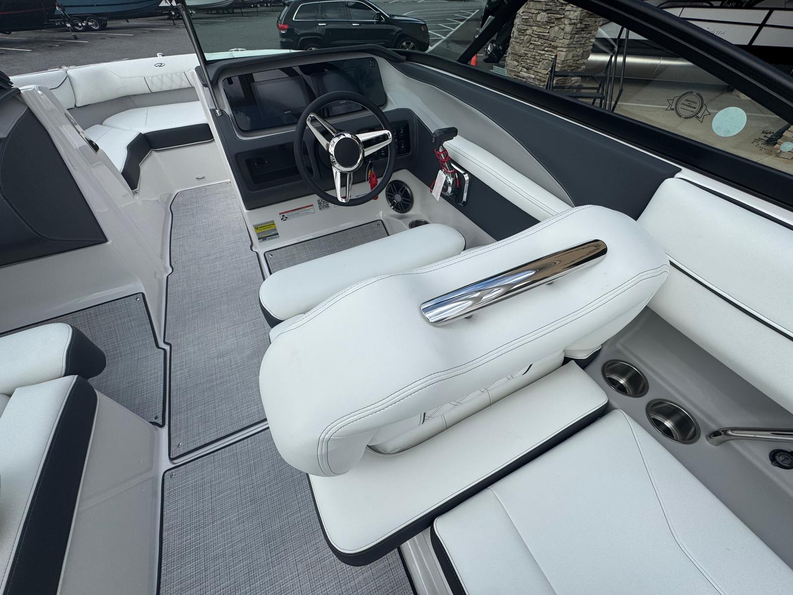 The Regal LS2 Bowrider is engineered for convenience and practicality, making ownership a breeze. Its manageable length of 22.33 feet allows for easy docking and maneuvering, even in crowded marinas or tight spaces. The travel storage cover protects your investment from the elements, while the battery charger ensures your electronics are always ready for use. Fender clips provide quick and secure attachment points, streamlining the docking process and safeguarding your boat’s exterior.The LS2’s efficient engine design helps you save on fuel costs, while the dual Garmin 743 displays offer peace of mind with real-time navigation and system updates. The cockpit seagrass mat is both stylish and functional, providing a comfortable surface that’s easy to clean after a day of fun. These practical features make the LS2 an ideal choice for boaters who value both performance and convenience.