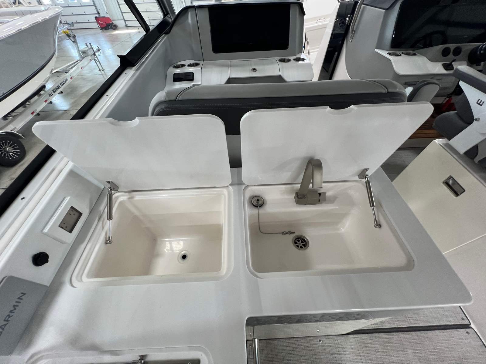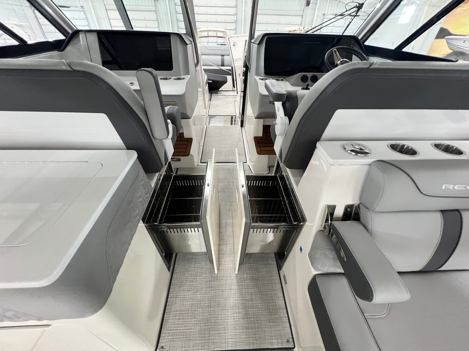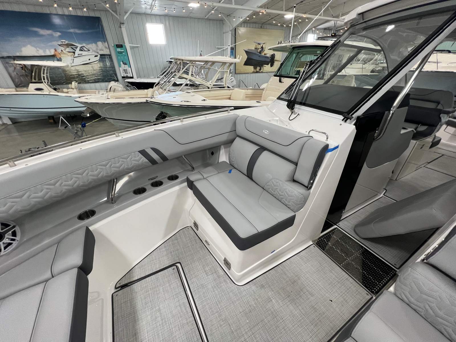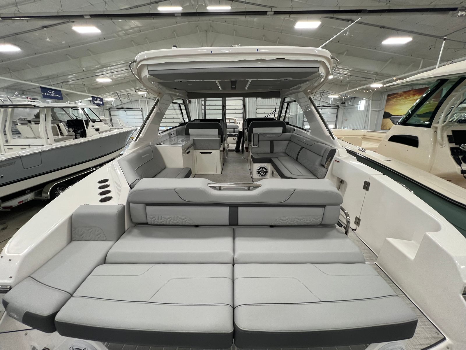 The Regal LS36 is designed with the needs of modern boaters in mind. The ample storage throughout the boat ensures that all your gear, water toys, and personal items are neatly stowed yet easily accessible. The bow thruster simplifies docking, making it stress-free to maneuver in tight spaces or busy marinas. The efficient design of the twin engines helps maximize fuel economy, so you can spend more time enjoying the water and less time refueling.The durable materials and thoughtful construction mean that maintenance is straightforward, allowing you to focus on what matters most—enjoying your time on the water. The versatile cockpit enclosure provides shelter when needed, extending your boating season and enhancing comfort during unpredictable weather.
