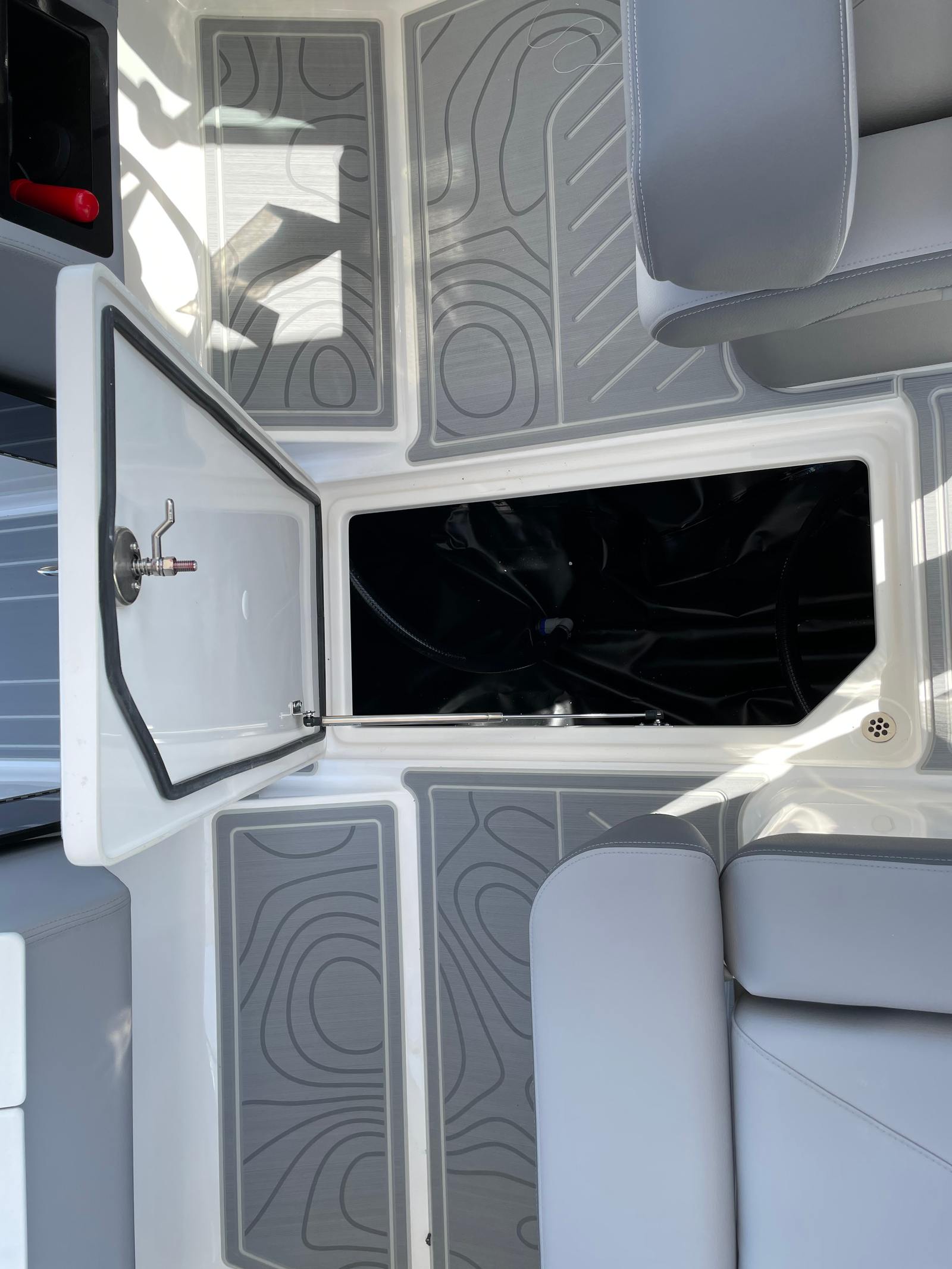 Practicality is at the heart of the Regal LS4 Surf’s design. The travel storage cover helps keep your boat in pristine condition, protecting it from the elements during transport or storage. The SeaDek cockpit sole not only enhances comfort but also makes cleaning and maintenance a breeze. The boat’s length and single-engine configuration make docking and maneuvering straightforward, even for less experienced boaters.The LS4 Surf’s layout offers plenty of space for storing gear, water toys, and personal items, ensuring that everything you need for a day on the water is within easy reach. The combination of style, performance, and thoughtful features makes this bowrider boat for sale an excellent choice for those who value both form and function.