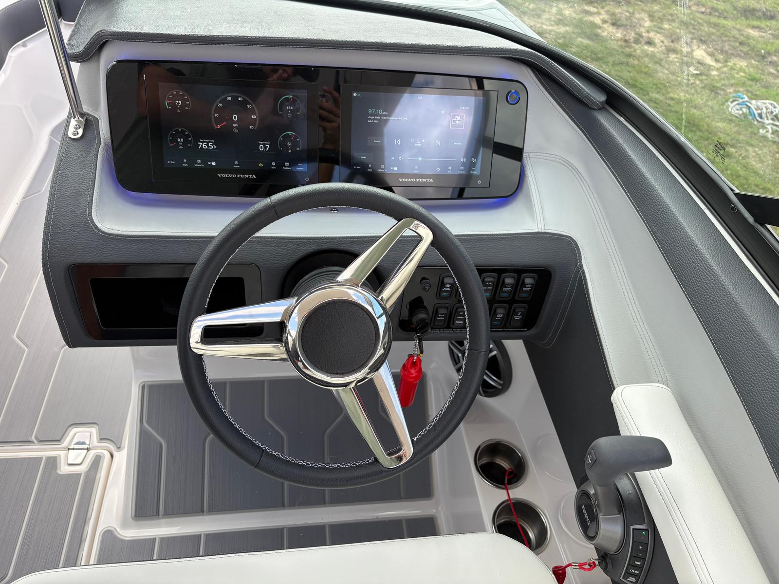 The Regal LS4 Surf comes loaded with innovative features and thoughtful design elements that elevate your boating experience. Its spacious Bowrider layout provides ample seating for family and friends, ensuring everyone can relax in comfort. The ergonomic helm is equipped with intuitive controls, allowing the captain to navigate with ease and precision. Premium materials and finishes throughout the boat create a luxurious atmosphere, while the open bow area invites guests to soak up the sun and enjoy panoramic views.Special features of the LS4 Surf include advanced surf technology, allowing you to create customizable waves for wake surfing and other water sports. The boat’s hull design enhances stability and ride quality, ensuring a smooth and enjoyable journey even in choppy conditions. Storage compartments are strategically placed to keep gear organized and out of the way, maximizing usable space without sacrificing convenience.