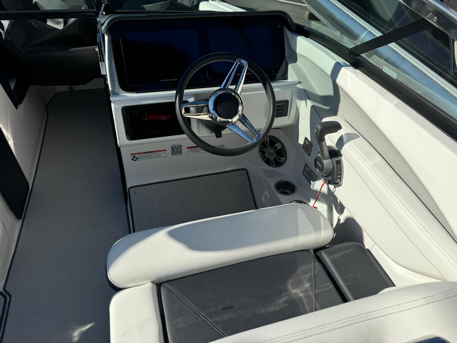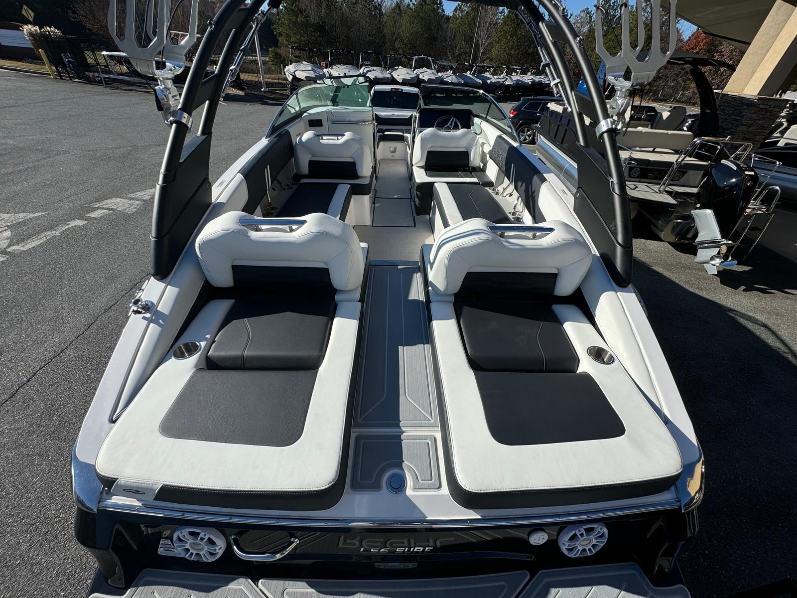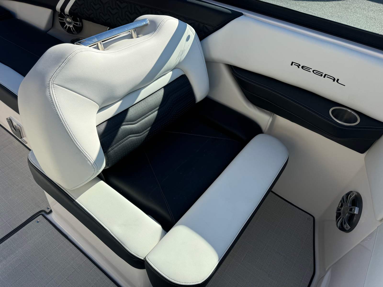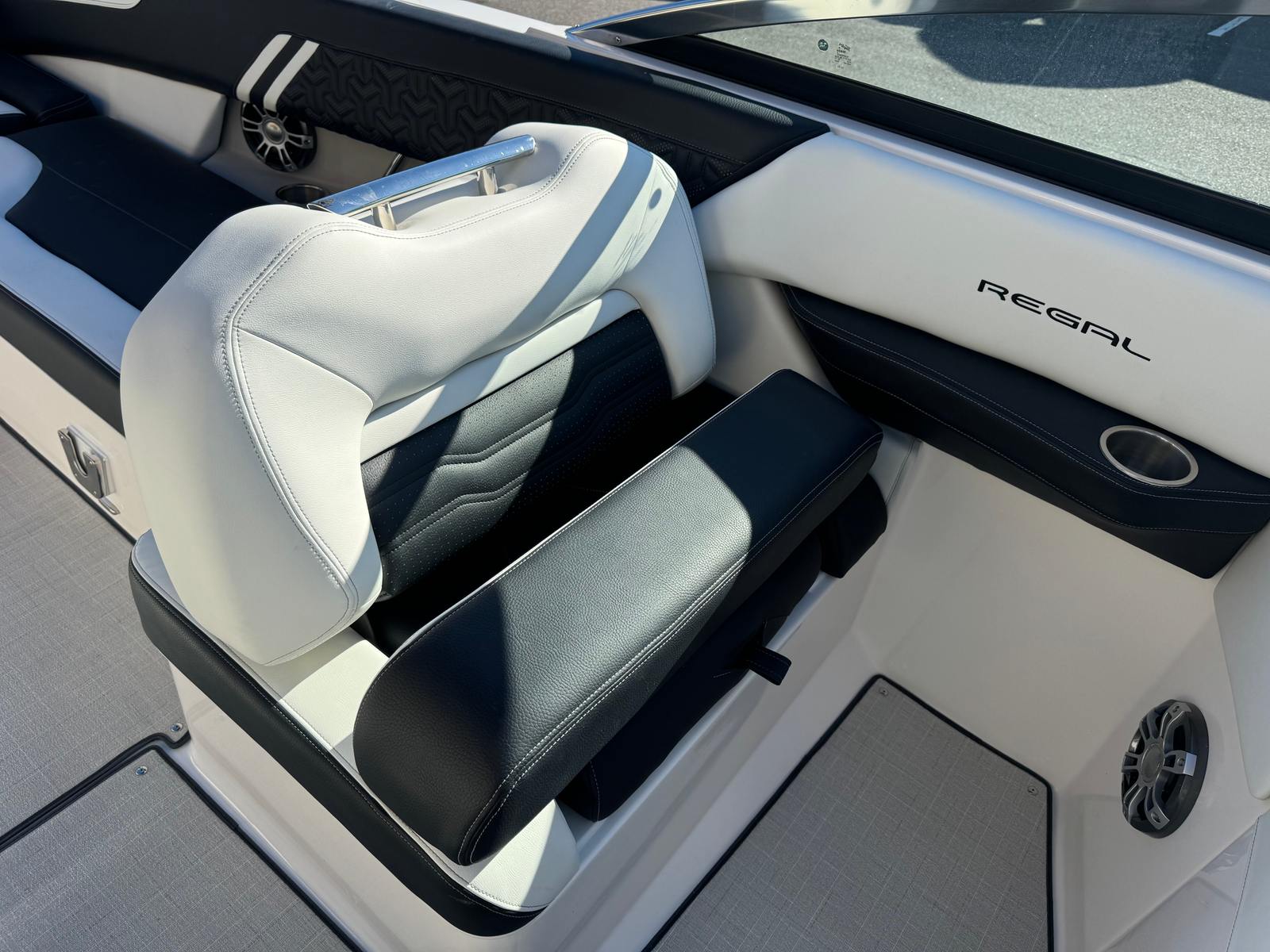 The 2025 Regal LS6 Surf stands out as a premier Bowrider, boasting a generous length of 26.33 feet. Its striking black hull and bottom color, complemented by the Zone 4- Pure White accent, create a bold and sophisticated presence on the water. Regal’s renowned craftsmanship is evident in every detail, from the sculpted lines to the spacious layout. This new Bowrider boat for sale is built to impress, offering ample room for relaxation, entertainment, and water sports. Whether you’re cruising with friends or hosting a family outing, the LS6 Surf delivers the perfect blend of style and substance.