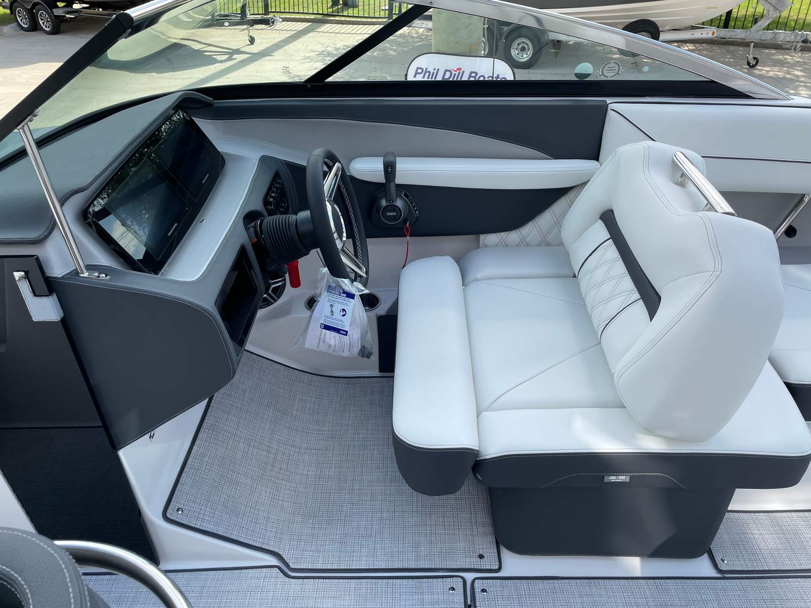 The 2026 Regal LS6 Surf is a striking 26-foot bowrider that blends modern design with innovative technology. Measuring an impressive 26.33 feet in length, this boat offers ample space for relaxation, entertainment, and adventure. The LS6 Surf’s sleek lines and contemporary profile are complemented by a stunning Tahiti Beach White hull, accented with a Newport Blue bootstripe and a Graphite bottom color. The Titanium interior exudes sophistication, creating a welcoming and stylish environment for you and your guests. As a new model, this Regal boat for sale promises pristine condition and the latest advancements in boating.