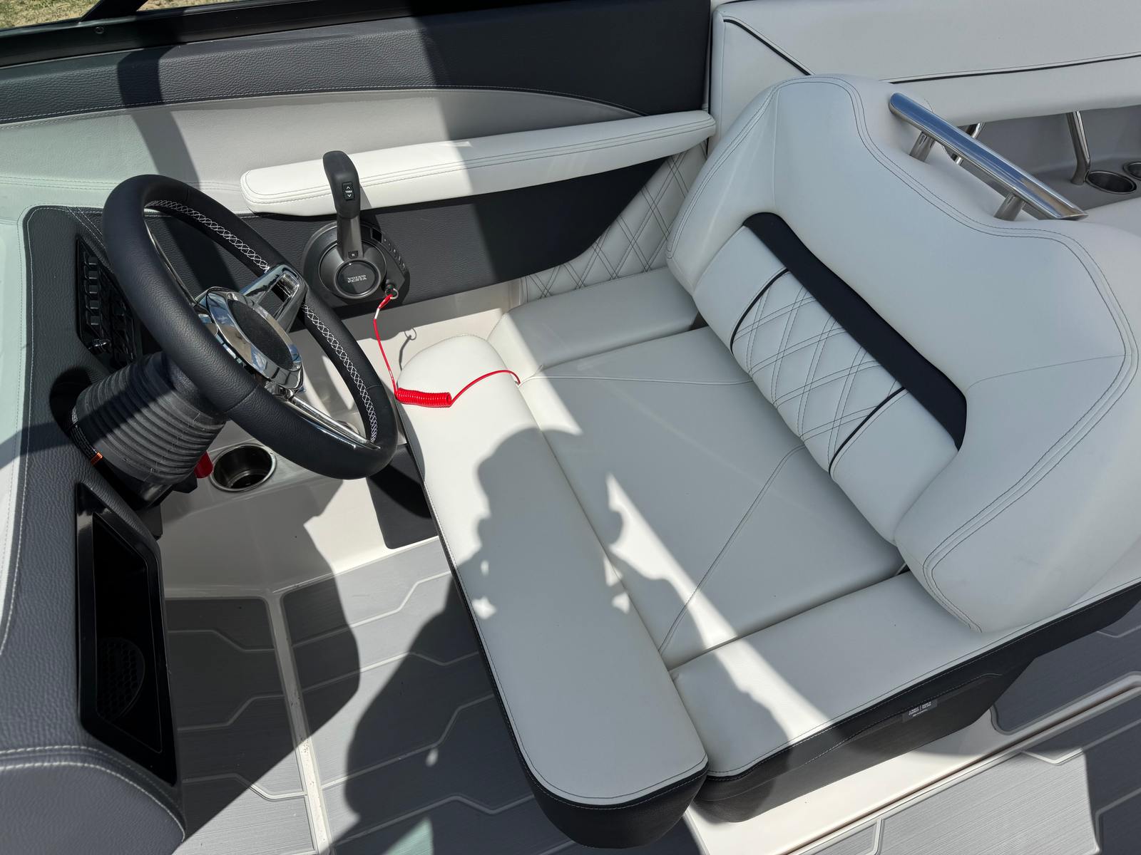 The 2026 Regal LS6 is designed with both aesthetics and functionality in mind. Its striking hull color in Tahiti Beach White is beautifully complemented by a Mediterranean Blue bottom, creating a sophisticated and eye-catching profile that will turn heads at any marina. Step aboard and you are greeted by a luxurious Titanium interior, offering a modern and inviting atmosphere for you and your guests.Enjoy the comfort and safety of the SeaDek cockpit sole and SeaDek swim platform, providing a soft, non-slip surface that enhances both style and practicality. The swim platform cover protects your boat’s rear deck, while the travel storage cover ensures your LS6 remains pristine during transport and storage. The dual battery switch with tray and cables, along with a battery charger, ensures you have reliable power for all your adventures, so you can focus on fun without worry.