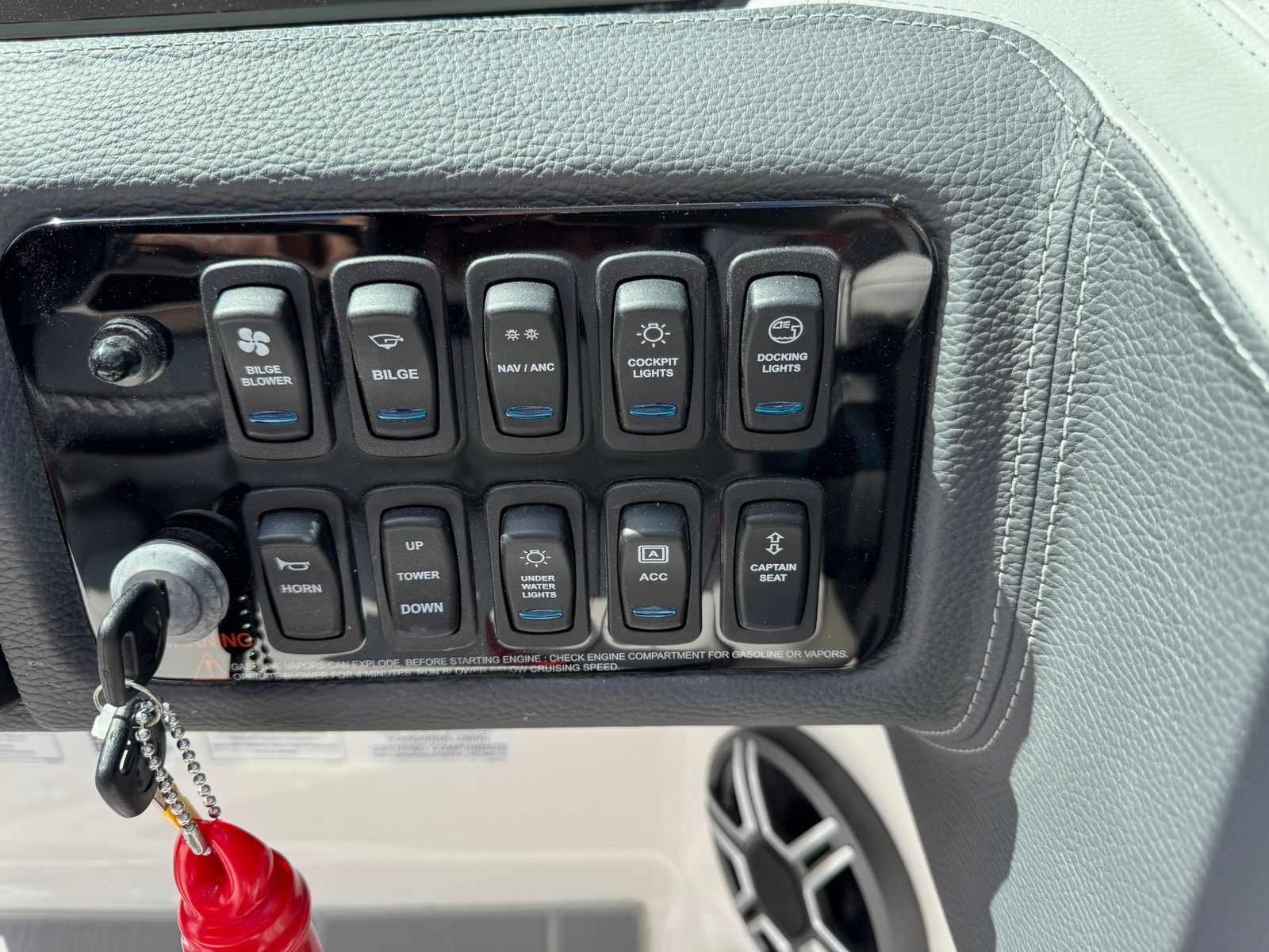 At the heart of the 2026 Regal LS6 is a robust single engine delivering an impressive 350 horsepower. With only 1 engine hour, this boat is essentially brand new, offering you the peace of mind that comes with a fresh start. The powerful engine ensures exhilarating acceleration, smooth cruising, and responsive handling, making every journey on the water a true pleasure. Whether you are gliding across calm lakes or tackling choppier waters, the LS6’s performance capabilities promise a dynamic and reliable ride. The transom trim switch adds an extra layer of convenience, allowing you to fine-tune your boat’s performance for optimal efficiency and comfort.