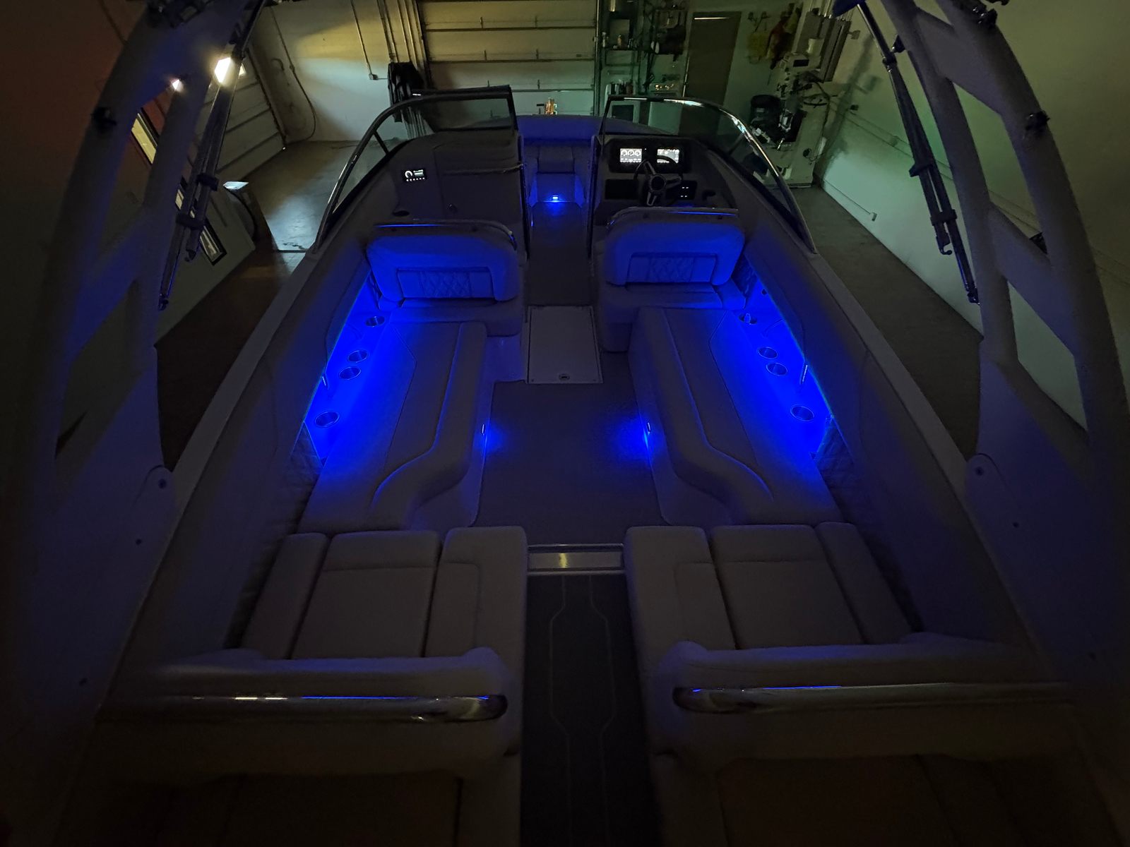 At the heart of this Bowrider is a powerful single engine delivering 350 horsepower, ensuring exhilarating acceleration and smooth cruising. With only 251 engine hours, this Regal LS6 has plenty of life left for countless adventures. The robust engine provides the muscle you need for watersports, fast cruising, or simply enjoying a spirited ride across the lake. Regal’s engineering ensures that the LS6 handles with precision and confidence, making it a joy to pilot whether you’re navigating tight turns or cruising at higher speeds. The combination of power and efficiency makes this Bowrider boat for sale a standout in its class.
