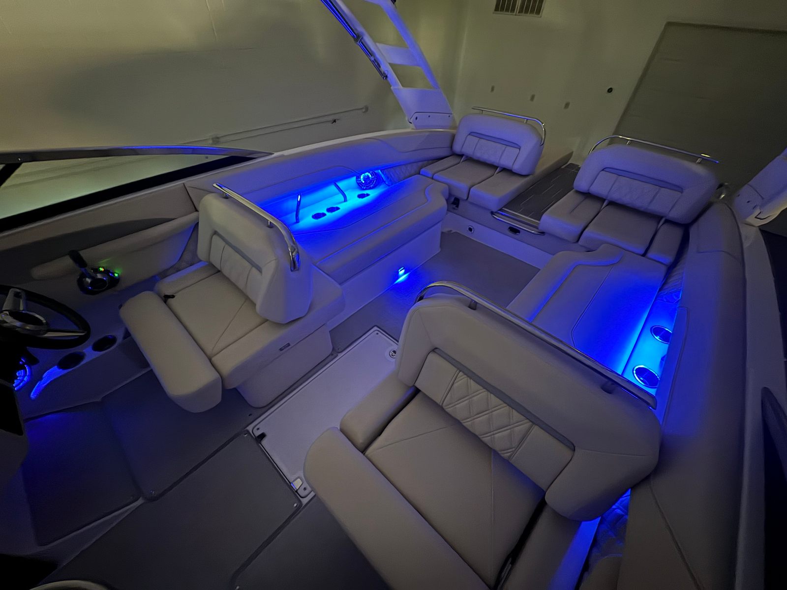 The Regal LS6 Bowrider truly shines in a variety of scenarios. It’s the perfect choice for family outings, offering plenty of space for kids and adults alike to enjoy a day on the water. The powerful engine and agile handling make it ideal for towing water toys or wakeboarders, adding excitement to every trip. For those who love to entertain, the LS6’s open layout and comfortable seating create a welcoming atmosphere for socializing and dining al fresco. Whether you’re planning a romantic sunset cruise, a lively gathering with friends, or a solo adventure, this Bowrider adapts to your lifestyle and preferences.