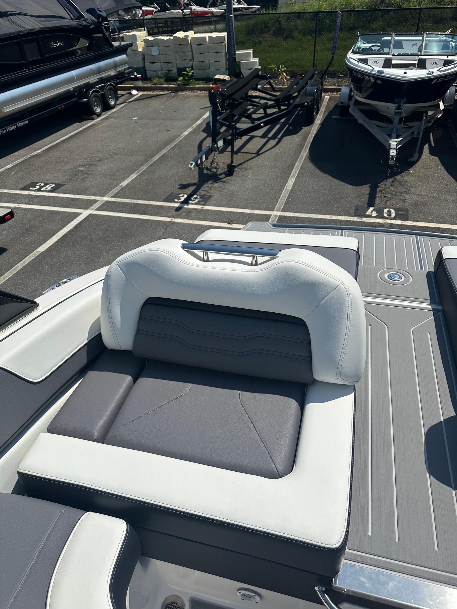 The 2025 Regal LS9 is packed with premium features that set it apart from other Bowrider boats for sale. The dual Volvo 12" glass cockpit displays offer advanced navigation and control, providing clear, intuitive access to all essential information. The transom trim switch allows for easy adjustment of your boat’s trim, optimizing performance and fuel efficiency. A battery charger ensures your boat is always ready for your next adventure, while the premium package elevates your onboard experience with top-tier amenities and finishes.The LS9’s color scheme is a testament to Regal’s attention to detail, with the Steel Gray hull, Black bottom, and Pure White and Black accents creating a visually stunning vessel. Every element, from the hull to the upholstery, is crafted for both durability and elegance, ensuring your boat looks as good as it performs.