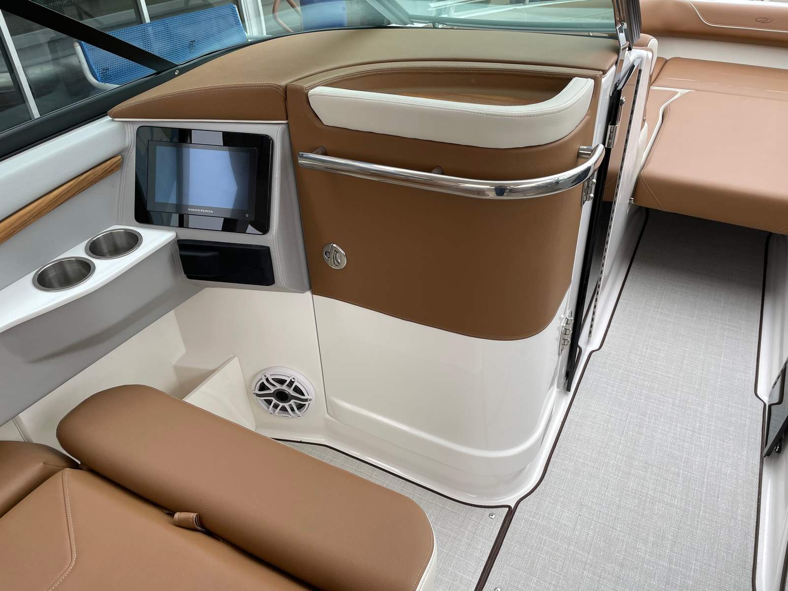 At the heart of the Regal LS9 is a powerful Volvo V8 380 EVC2 DP CAT engine, delivering an impressive 380 horsepower. This single-engine setup provides exhilarating acceleration and smooth handling, whether you’re cruising at a leisurely pace or powering through open water. The advanced EVC2 (Electronic Vessel Control) system ensures precise control and responsiveness, making docking and maneuvering effortless. With this level of performance, the LS9 Bowrider offers a thrilling ride that’s perfect for water sports, island hopping, or simply enjoying the freedom of the open water.