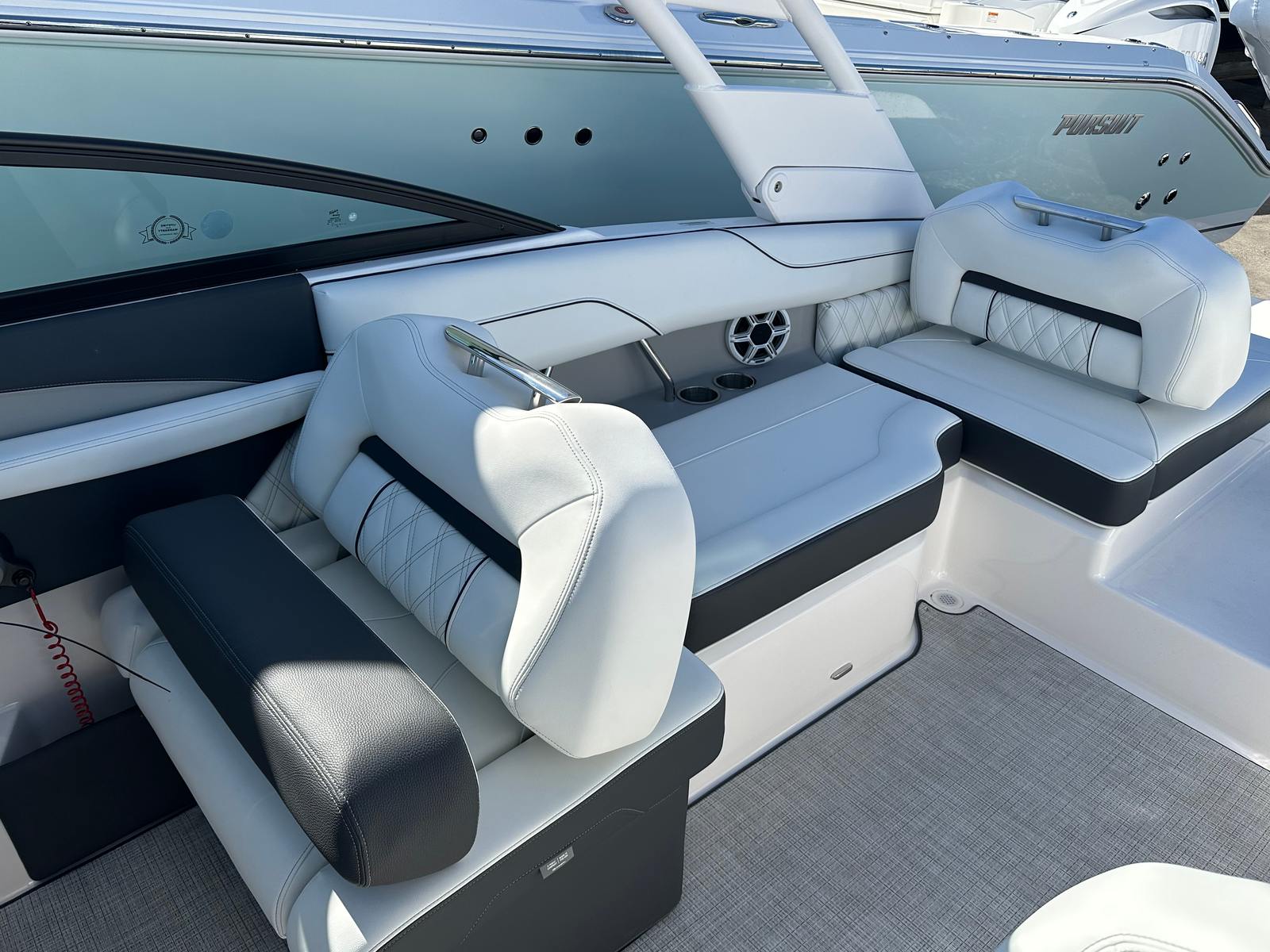 The 2026 Regal LX2 Bowrider is packed with premium features that elevate your time on the water. The stainless steel upgrade package not only enhances durability but also adds a polished, upscale look to the boat’s fittings and fixtures. Navigation and fish-finding are made easy with the dual Garmin 943XS units paired with a B60 transducer, providing advanced technology at your fingertips for safe and enjoyable journeys.The stereo performance and lighting package transforms the cockpit into an entertainment hub, perfect for setting the mood with your favorite playlists or creating an inviting atmosphere for evening cruises. The cockpit seagrass mat offers a plush, comfortable surface underfoot, while the dual battery switch with tray and cables ensures reliable power management for all your onboard systems.Every detail of the Regal LX2 is crafted with comfort and convenience in mind. The Titanium interior color scheme is both stylish and practical, designed to withstand the elements while maintaining its luxurious appearance. The combination of Tahiti Beach White hull and Mediterranean Blue bootstripe ensures that this Bowrider stands out wherever you go.