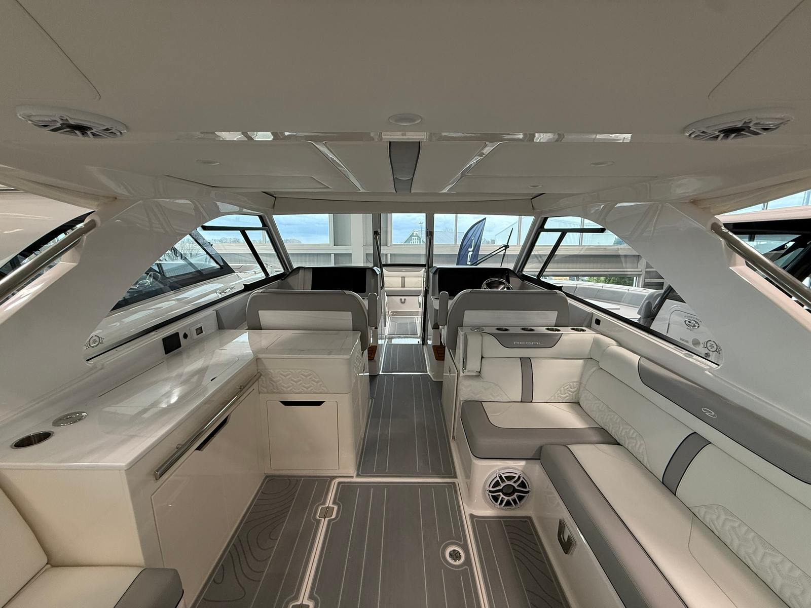 Owning the Regal LX36 bowrider is about more than just having a boat—it’s about embracing a lifestyle of fun, relaxation, and adventure. The spacious layout offers ample seating and room to move, making it ideal for socializing, sunbathing, or simply enjoying the view. The luxurious finishes and thoughtful amenities create an inviting atmosphere, whether you are hosting a lively gathering or seeking a peaceful retreat on the water.The advanced features of the LX36 not only enhance comfort but also provide peace of mind. The Palm Beach Enclosure keeps you protected from unexpected weather changes, while the Bow Thruster and Anchor Windlass simplify handling and anchoring, allowing you to focus on enjoying your time on board. The cockpit refrigerator and teak table make entertaining effortless, ensuring every outing is memorable.